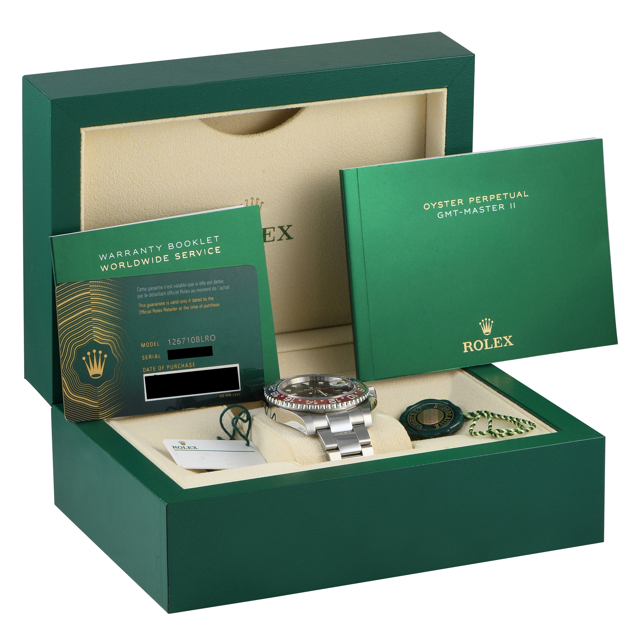 This unworn Rolex GMT-Master II Pepsi Watch 126710BLRO comes with the manufacturer’s box and papers.