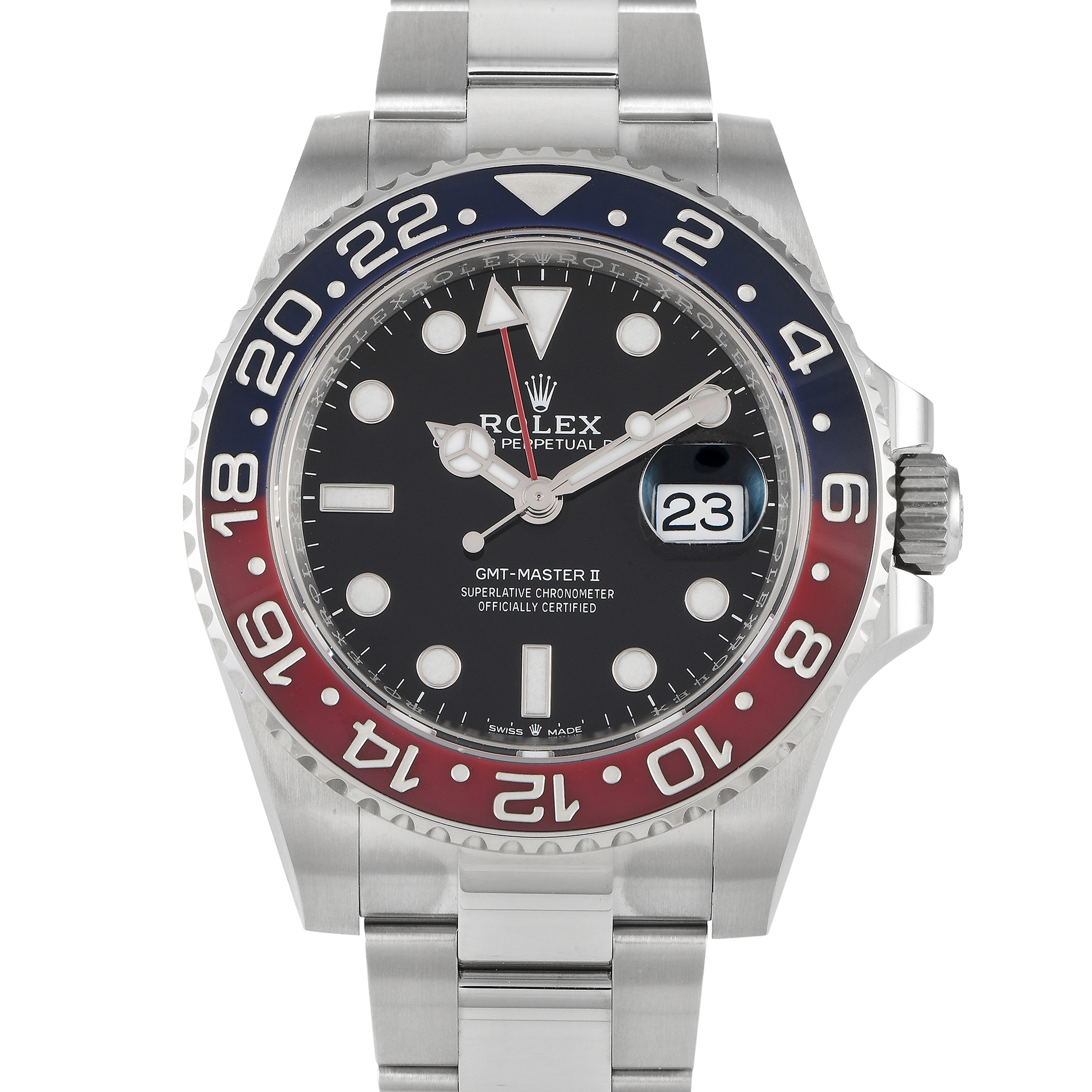 A stunning classic, this Rolex GMT-Master II ref.126710BLRO has the red-and-blue “Pepsi” bezel loved by many. This sought-after reference debuted in 2018, with a 40mm 904L stainless steel case and elegant five-piece-link Jubilee bracelet. The Oyster bracelet option was added in the following years. The dial is black, with large luminescent markers that complement the luminous Mercedes hands. The beating heart of this timepiece is the Caliber 3285 automatic movement, which provides a high level of accuracy and up to 72 hours of uninterrupted power. Every other two-color ceramic bezel insert that Rolex makes is half-black, but the vibrant Pepsi bezel is very difficult to manufacture, as the second color has to be added on top of the first. This is presumably why the red and blue colors vary from batch to batch, and collectors have already identified three different “Marks” of 126710BLRO bezel inserts. It’s also why ceramic Pepsi bezels appear monochromatic (all burgundy) under blacklight! In any case, whether or not the ever-present rumors of imminent discontinuation are true, the 126710BLRO is likely to remain a highly collectible Rolex reference for many years.