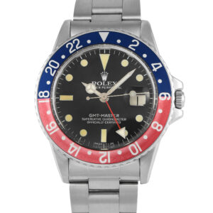 This pre-owned Rolex GMT-Master Pepsi Matte Black Watch 16750 comes with papers and a gift box.