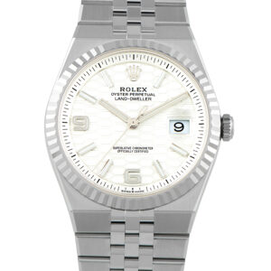 Released in 2025 as a new pillar alongside the Sea-Dweller and the Sky-Dweller, the Land-Dweller offers collectors a distinctly modern Rolex that remains versatile in any setting. It has a 40mm Oystersteel case with an 18K white gold fluted bezel and a Flat Jubilee bracelet specially designed for this model. The bracelet, which integrates seamlessly into the case, features flat satin-finished outer links and polished inner links. The watch’s white dial carries a satin-finished honeycomb motif with luminescent index and Arabic numeral hour markers, and luminescent hands. The newly developed Caliber 7135 self-winding movement drives the watch, featuring the Dynapulse escapement for greater efficiency and precision.
