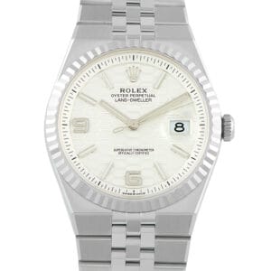 Offered unworn, this Rolex Land-Dweller 40 White Dial Flat Jubilee White Rolesor Watch 127334 comes complete with papers and the manufacturer’s box.