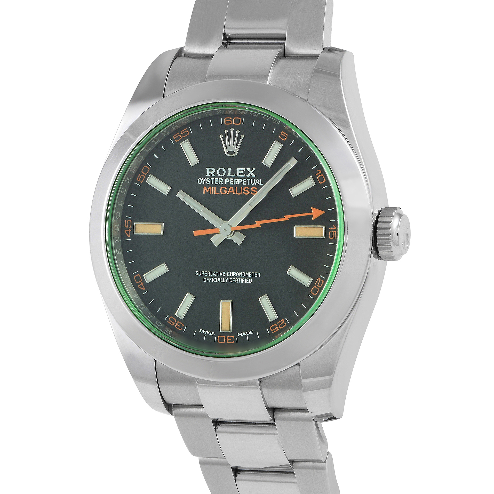 The Rolex Milgauss Watch, reference number 116400GV, is popular among professionals in science and engineering thanks to its remarkable resistance to magnetic fields.