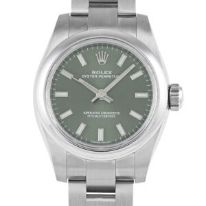 This unworn Rolex Oyster Perpetual Green Dial Ladies Watch 176200 is accompanied by papers and the manufacturer’s box.