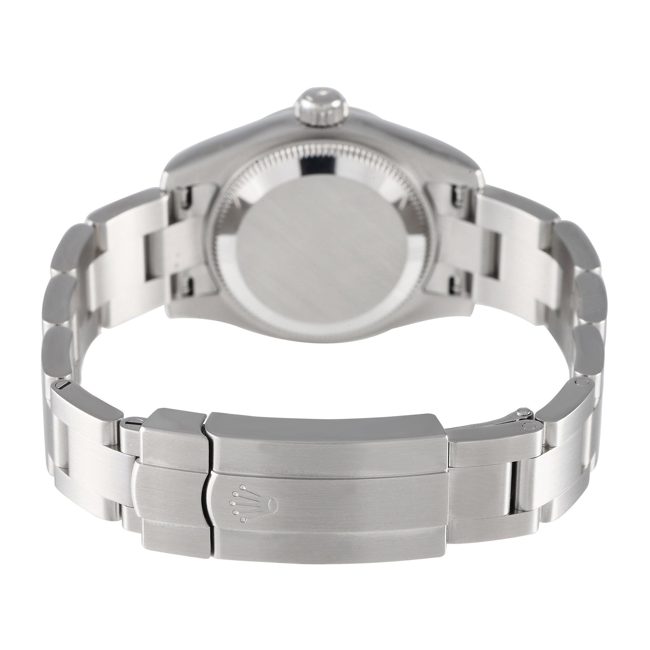 A fine pick for an entry-level Rolex for women. The Oyster Perpetual ref.176200 features a modest 26mm Oystersteel case with a smooth, polished bezel, and a matching three-link Oyster 904L Oystersteel bracelet. This time-only watch has a green dial with luminescent hands and index hour markers. The Rolex cal.2231 automatic movement lies within the case.