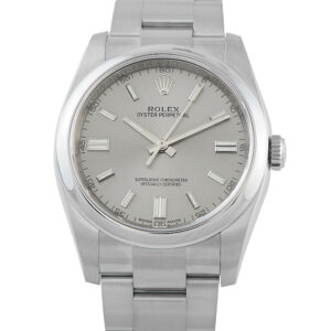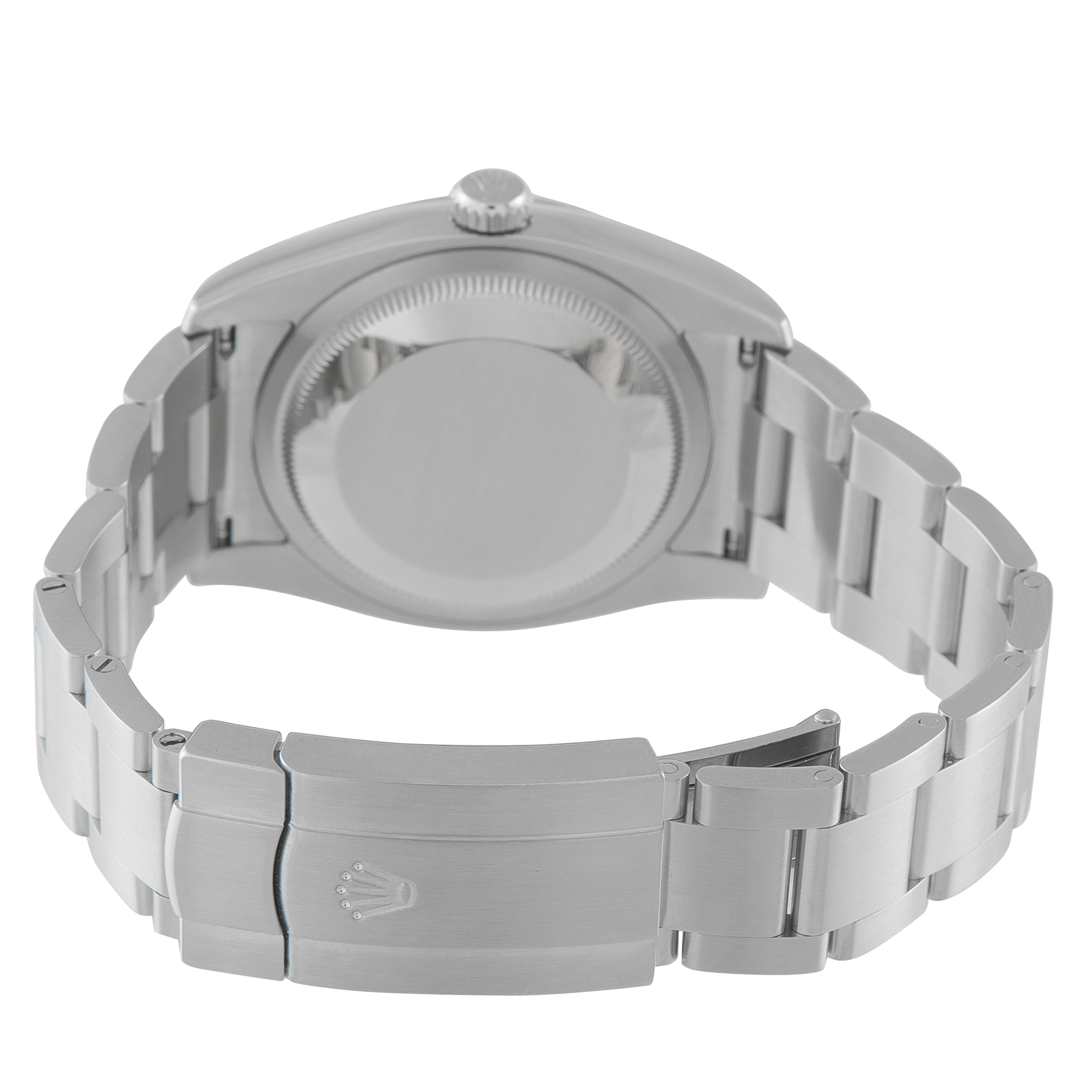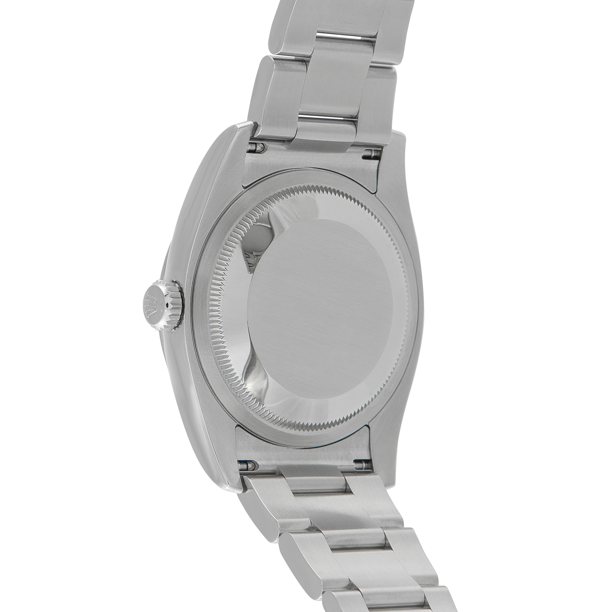 Ideal for wear both day and night, this luxury watch includes a 36mm case, bezel, and bracelet crafted from Stainless Steel. The minimalist slate dial beautifully showcases this piece’s luminous silver toned hands and luminous index markers. It’s powered by an automatic Rolex Calibre 3130 movement with 48 hours of reserve time and is water resistant up to 100 meters.