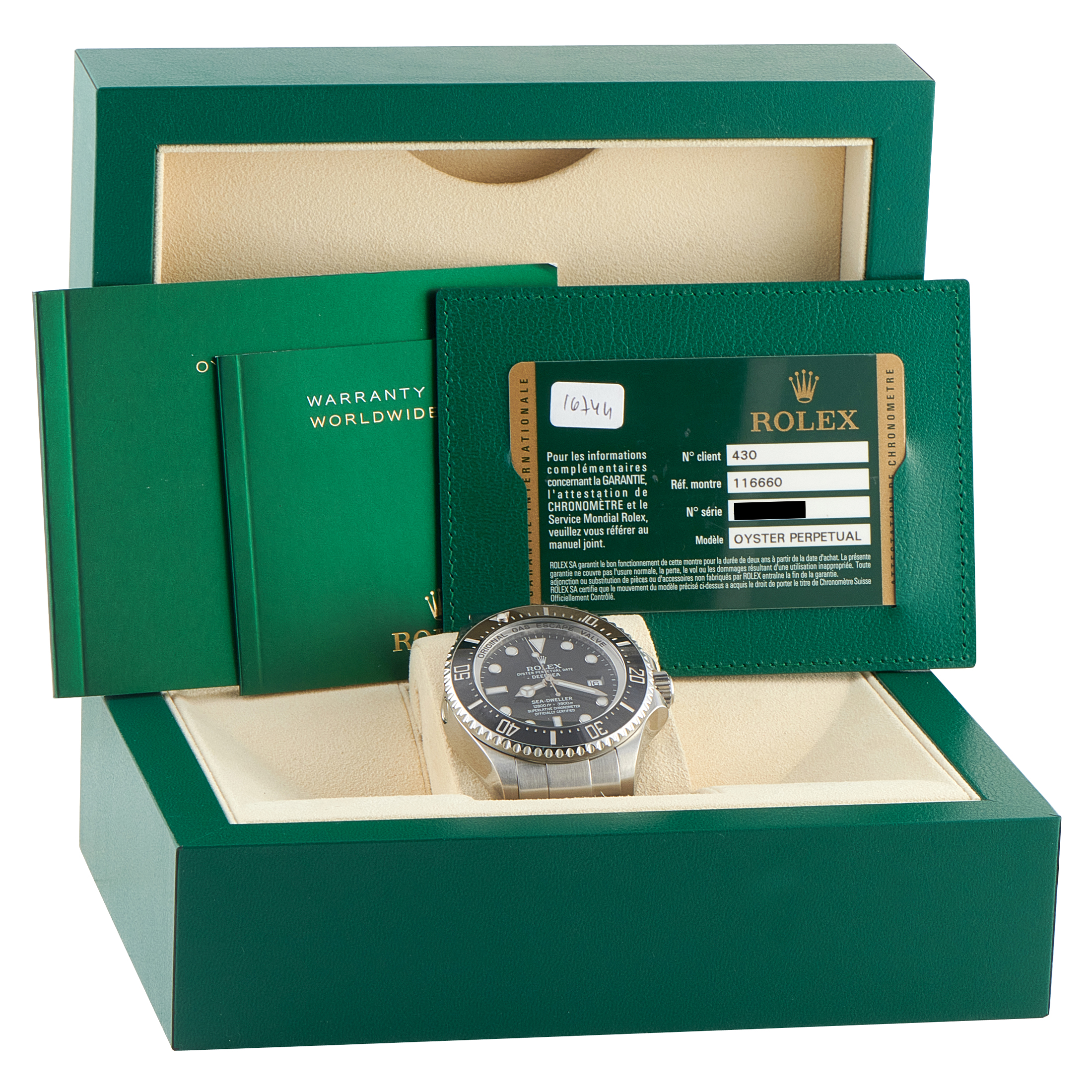 This pre-owned Rolex Sea-Dweller Deepsea Steel Watch 116660 comes complete with papers and the manufacturer’s box.