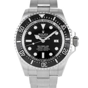 This Rolex Sea-Dweller Deepsea Black Dial Watch 126660 is offered in pre-owned condition, complete with papers and the manufacturer’s box.