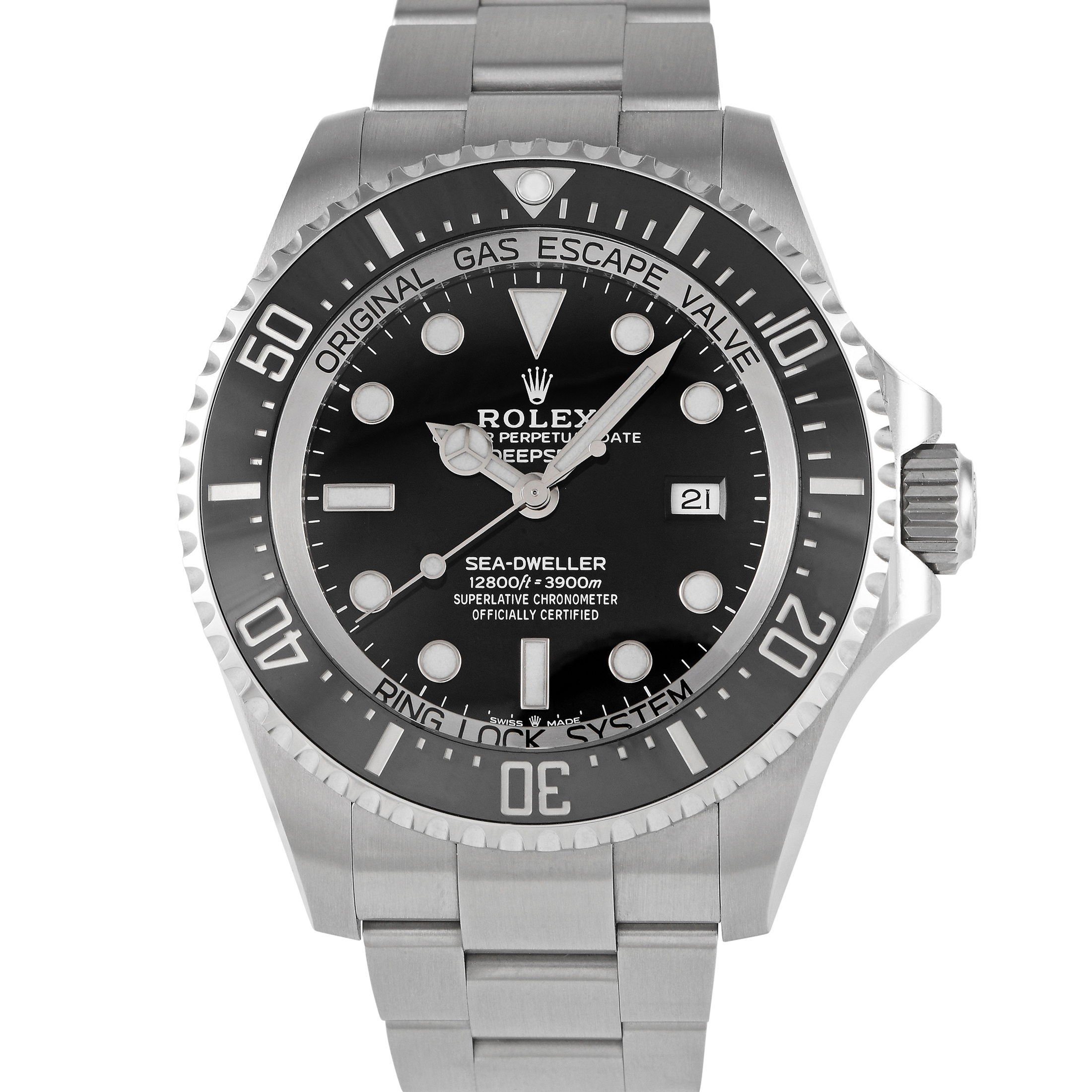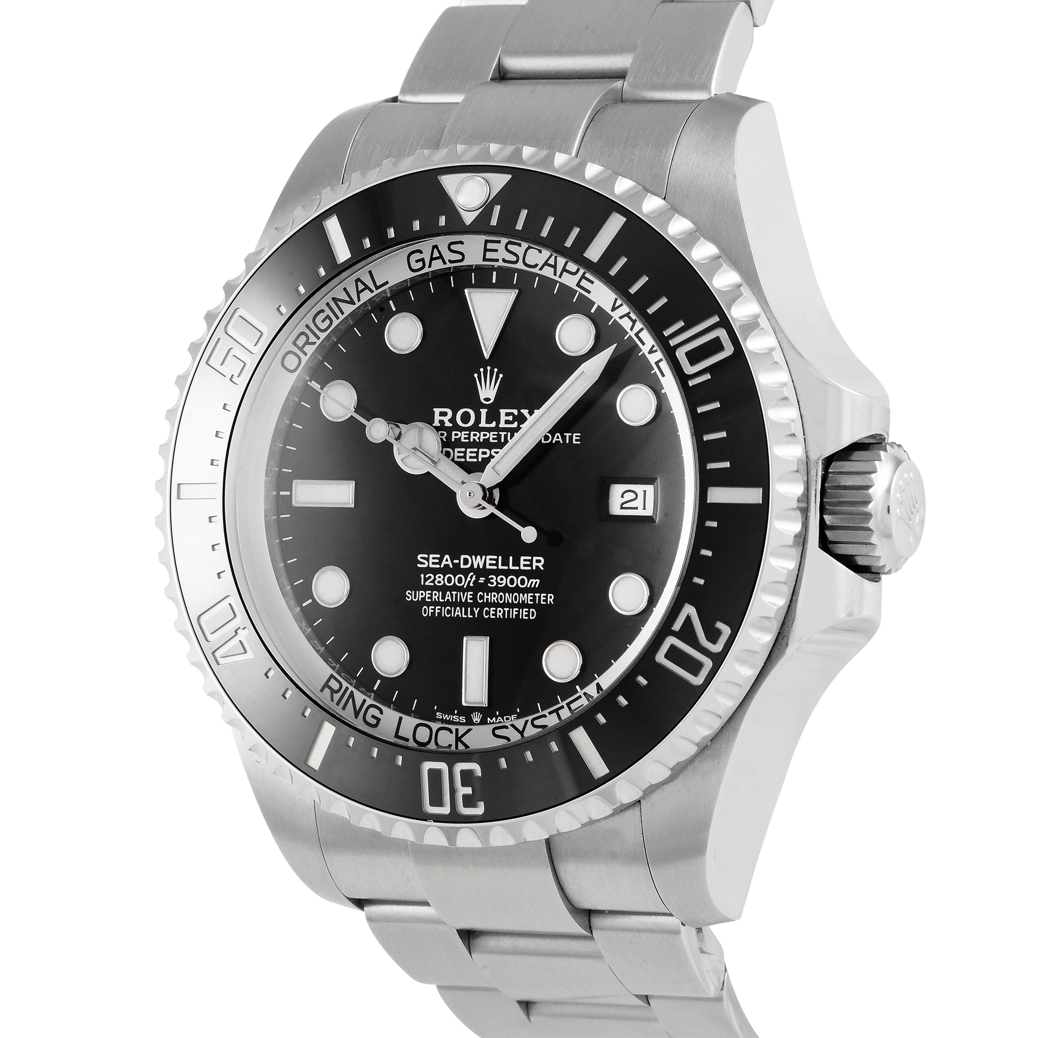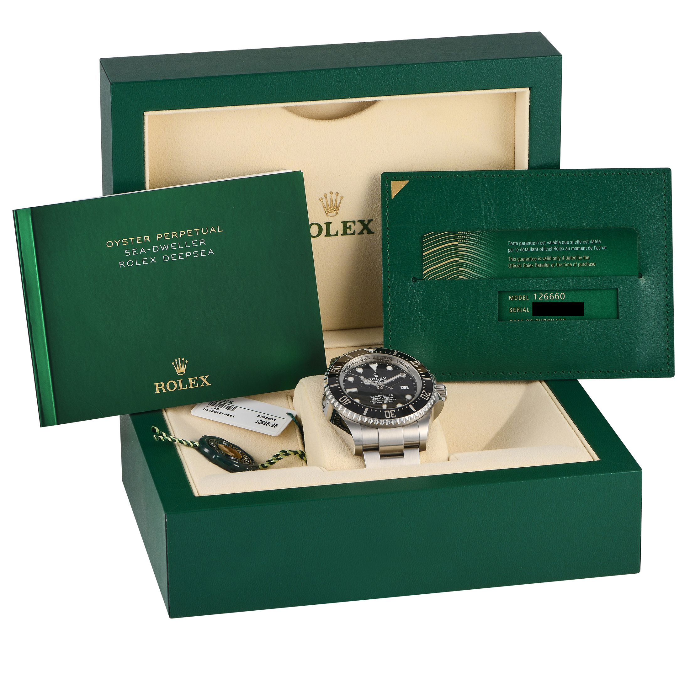 This Rolex Sea-Dweller Deepsea Black Dial Watch 126660 is offered in unworn condition, complete with papers and the manufacturer’s box.