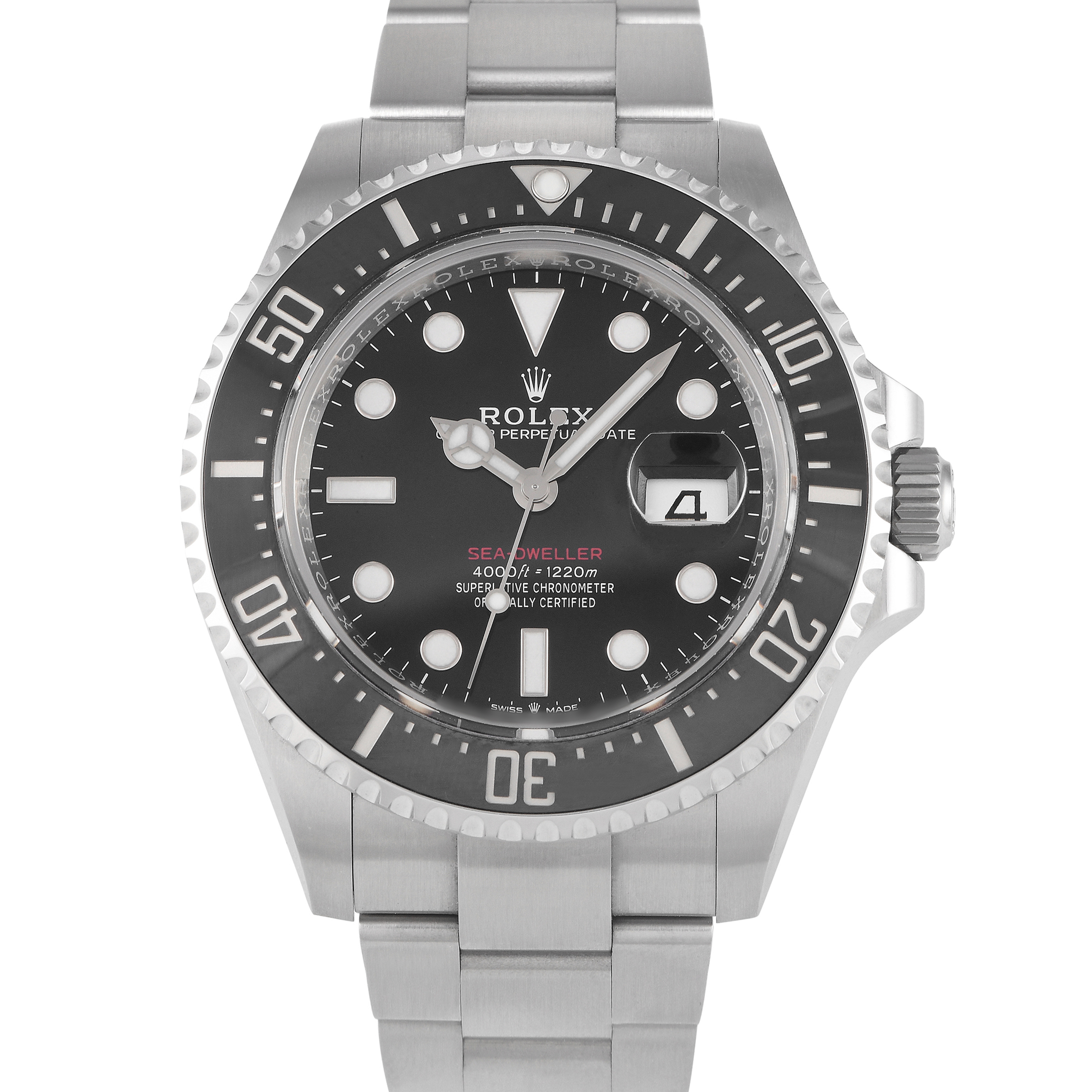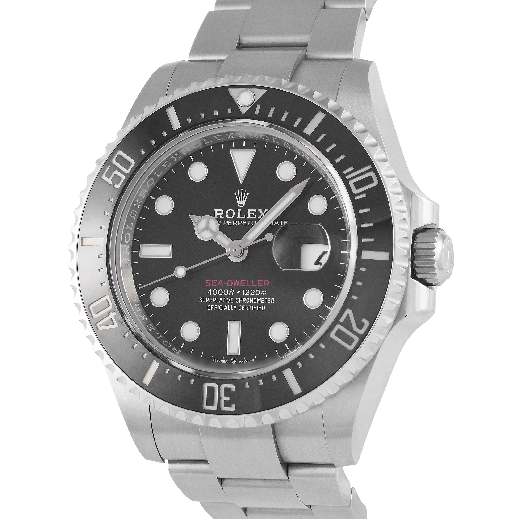 This pre-owned Rolex Sea-Dweller Black Dial Watch 126600 is accompanied by papers and the manufacturer’s box.
