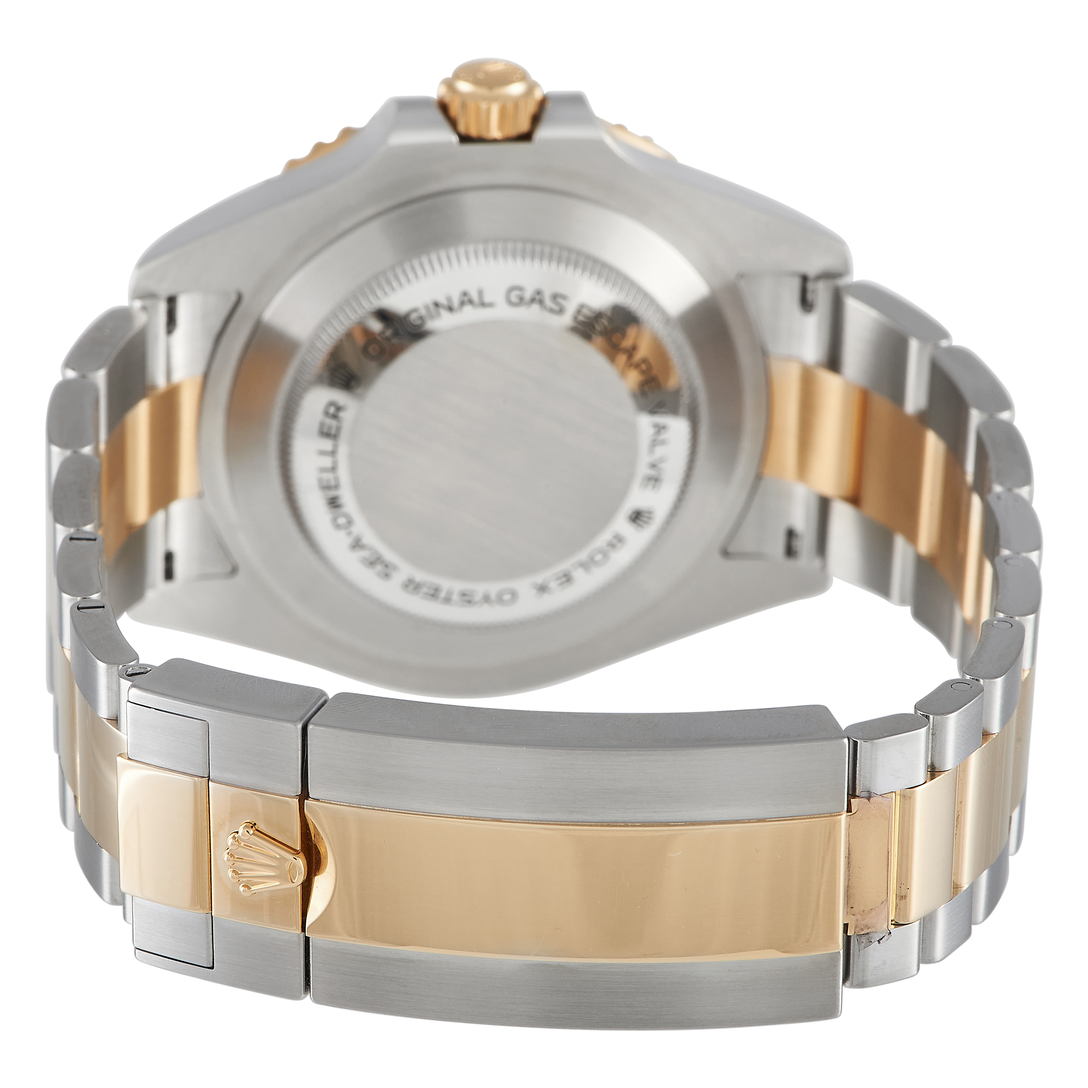 A stylish and highly dependable steel and yellow gold timepiece to accompany you in your greatest adventures. This Rolex Sea-Dweller 126603-0001 features a 43mm Oystersteel case with a unidirectional rotatable bezel in 18K yellow gold fitted with a black Cerachrom insert with graduations and numerals coated in gold. The sleek black dial features large shape hour markers with Chromalight lume. The hands are also filled with a luminescent material ensuring legibility in dark conditions. Complementing the two-toned face is a stainless steel and yellow gold Oyster bracelet. Powering this watch is caliber 3235 Superlative Chronometer automatic movement with 70 hours of power reserve.