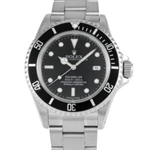 This is a pre-owned Rolex Sea-Dweller Men’s Watch 16600 that comes with a manufacturer’s box.