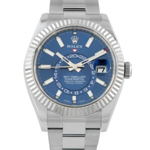 Offered pre-owned, this Rolex Sky-Dweller Blue Dial White Rolesor Watch 326934 comes with papers and the manufacturer’s box.