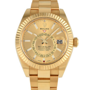 This pre-owned Rolex Sky-Dweller Champagne Dial 18K Yellow Gold Watch 326938 comes with papers and the manufacturer’s box.