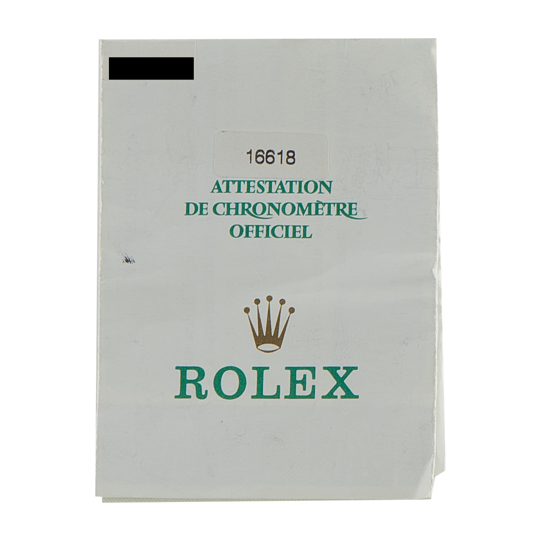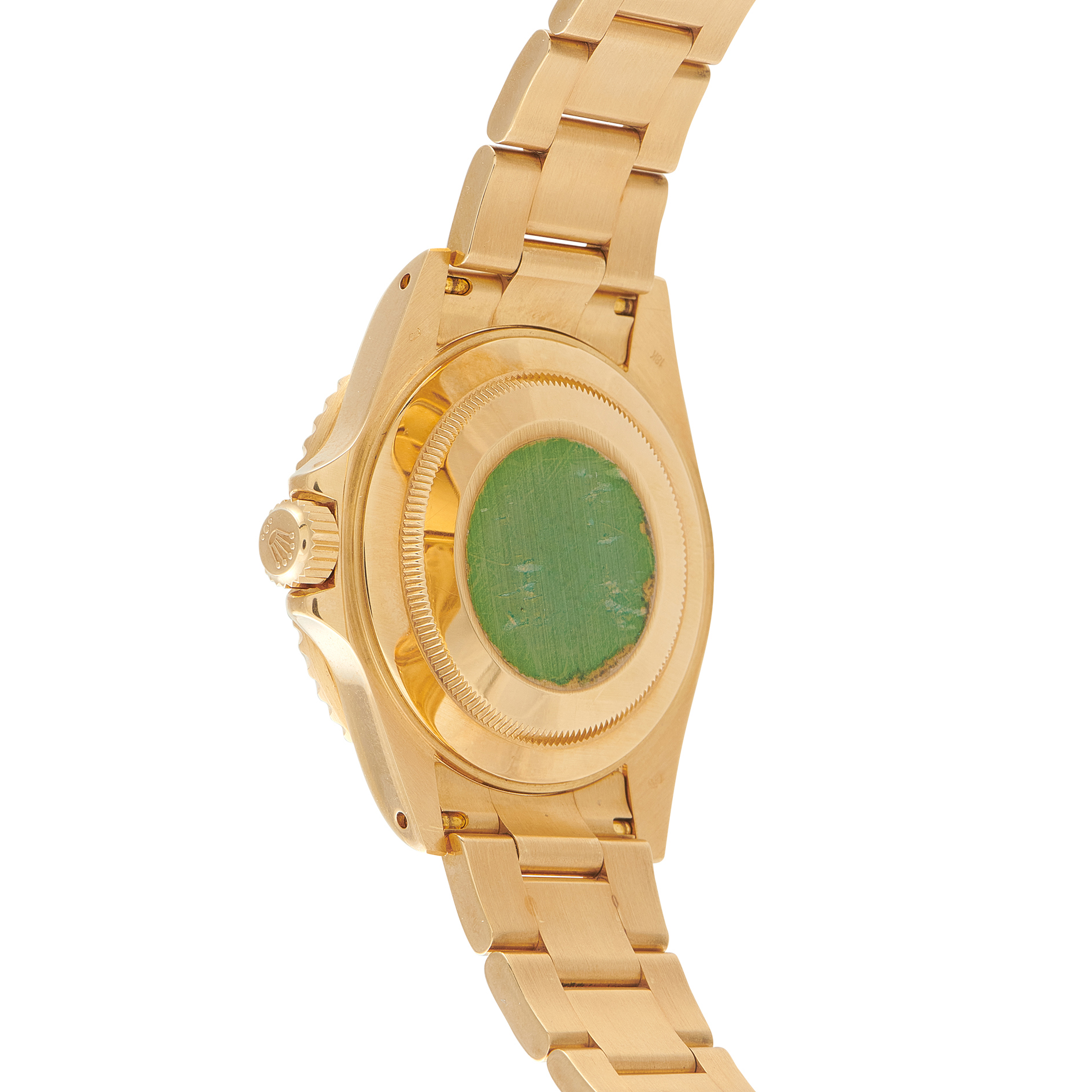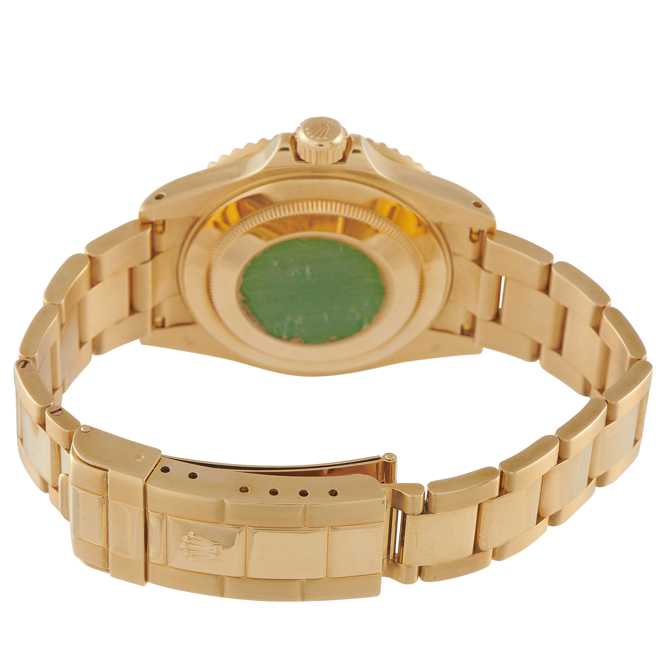 The Rolex Submariner Date 18K Yellow Gold Watch, reference number 16618, offers superior precision up to 300 meters below the surface.