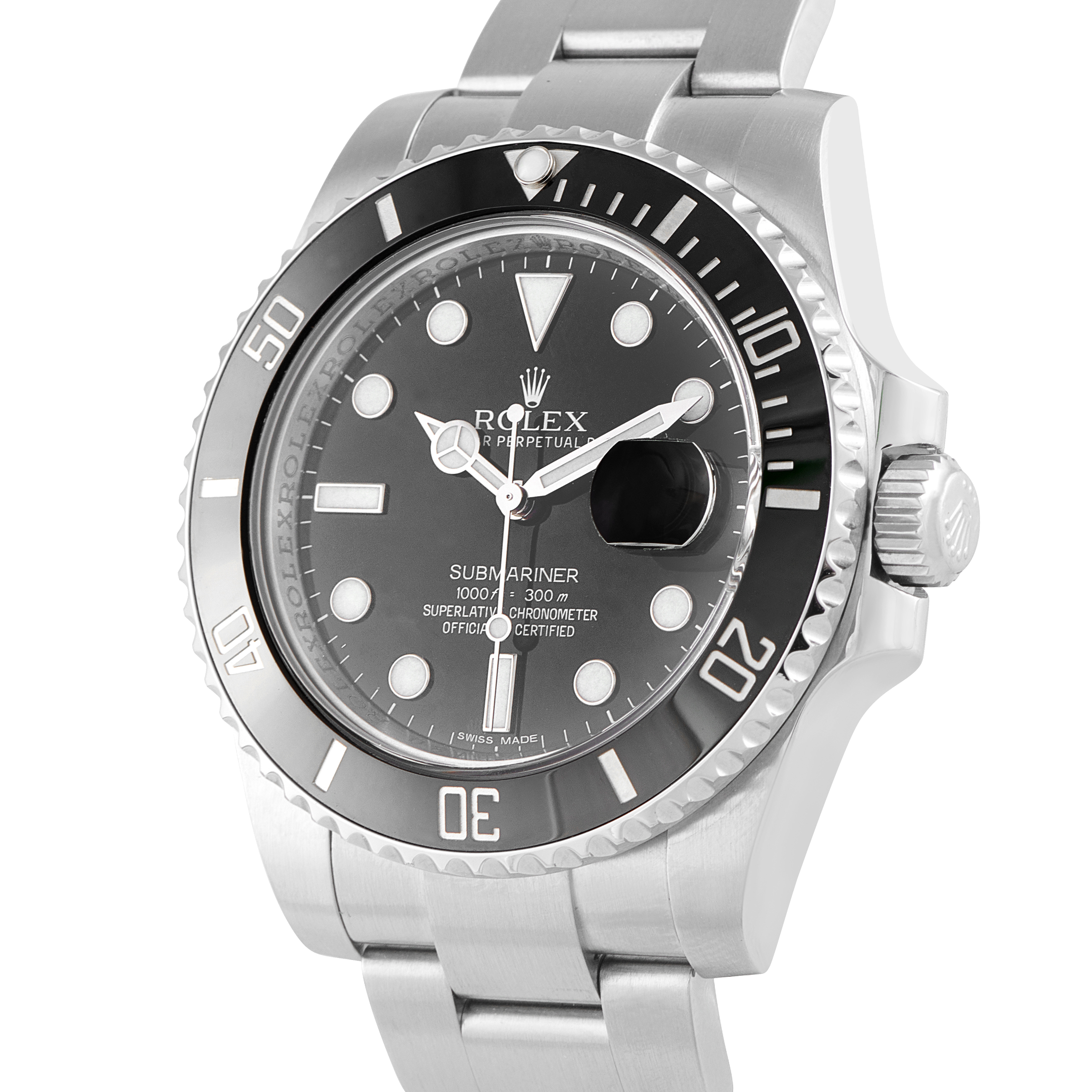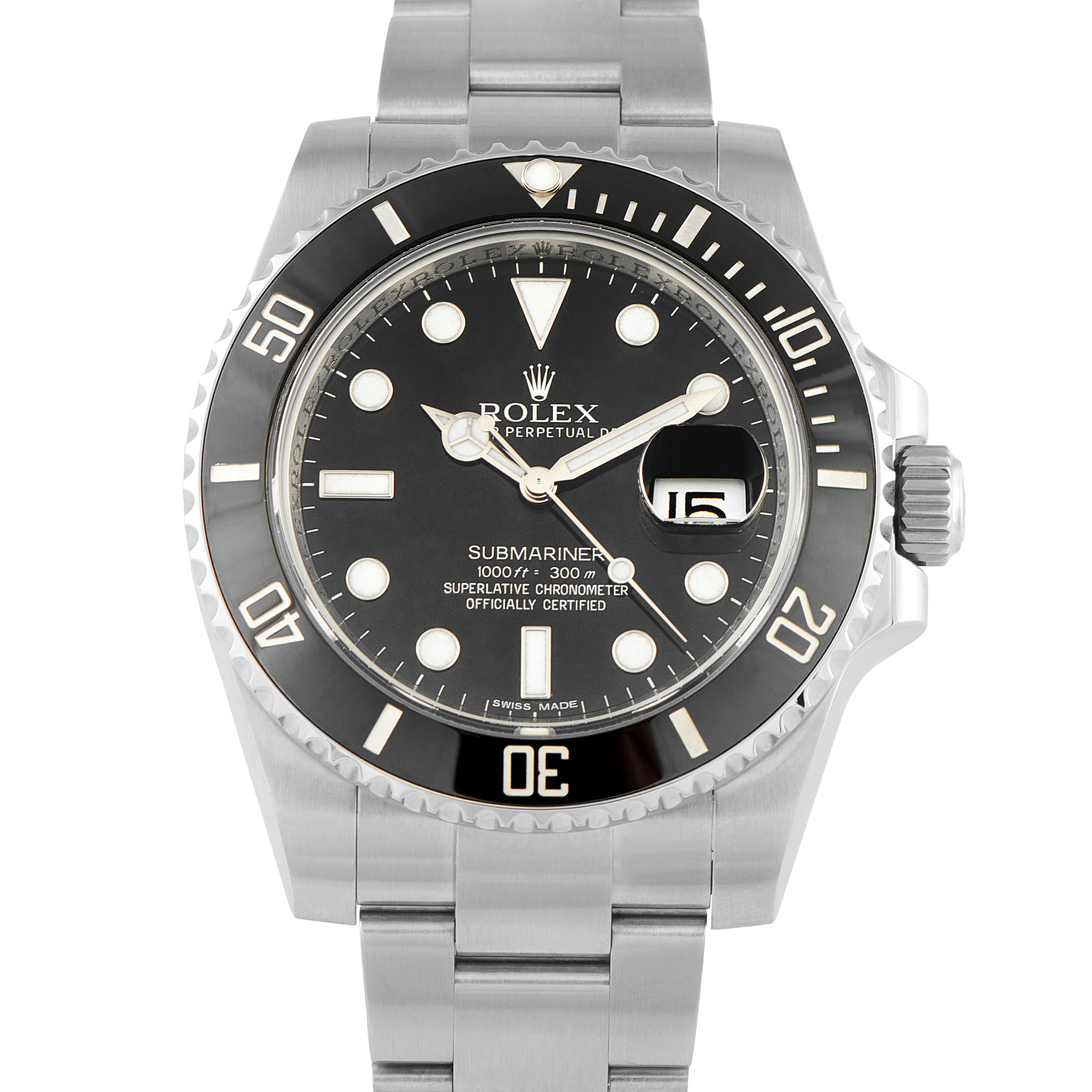 Getting the Rolex Submariner Date ref.116610 is an investment in excellence. This luxury watch of refined proportions offers superior durability, legibility, and performance. It has a 40mm Oystersteel case framed by a unidirectional rotating bezel with a scratch-resistant and fade-proof Cerachrom bezel. The black dial has Chromalight-filled hands and hour markers, and a magnified date window.