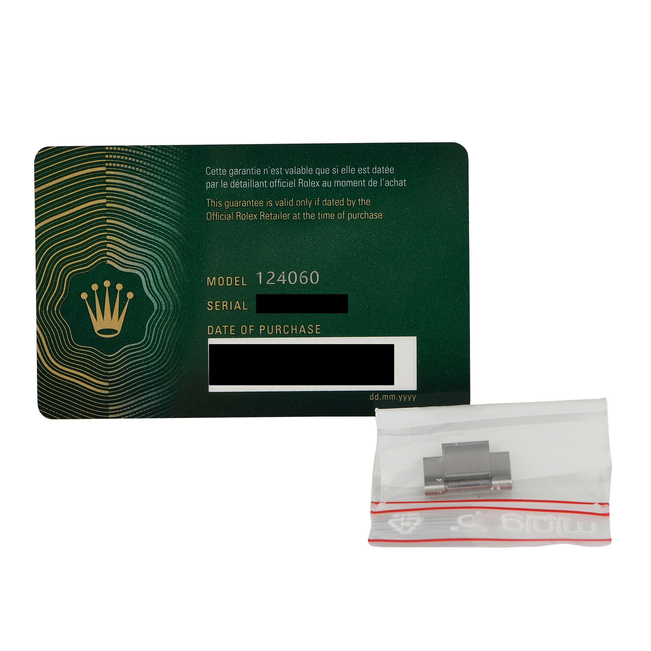 Offered in unworn condition, this Rolex Submariner 41mm Watch 124060 comes with papers and the manufacturer’s box.