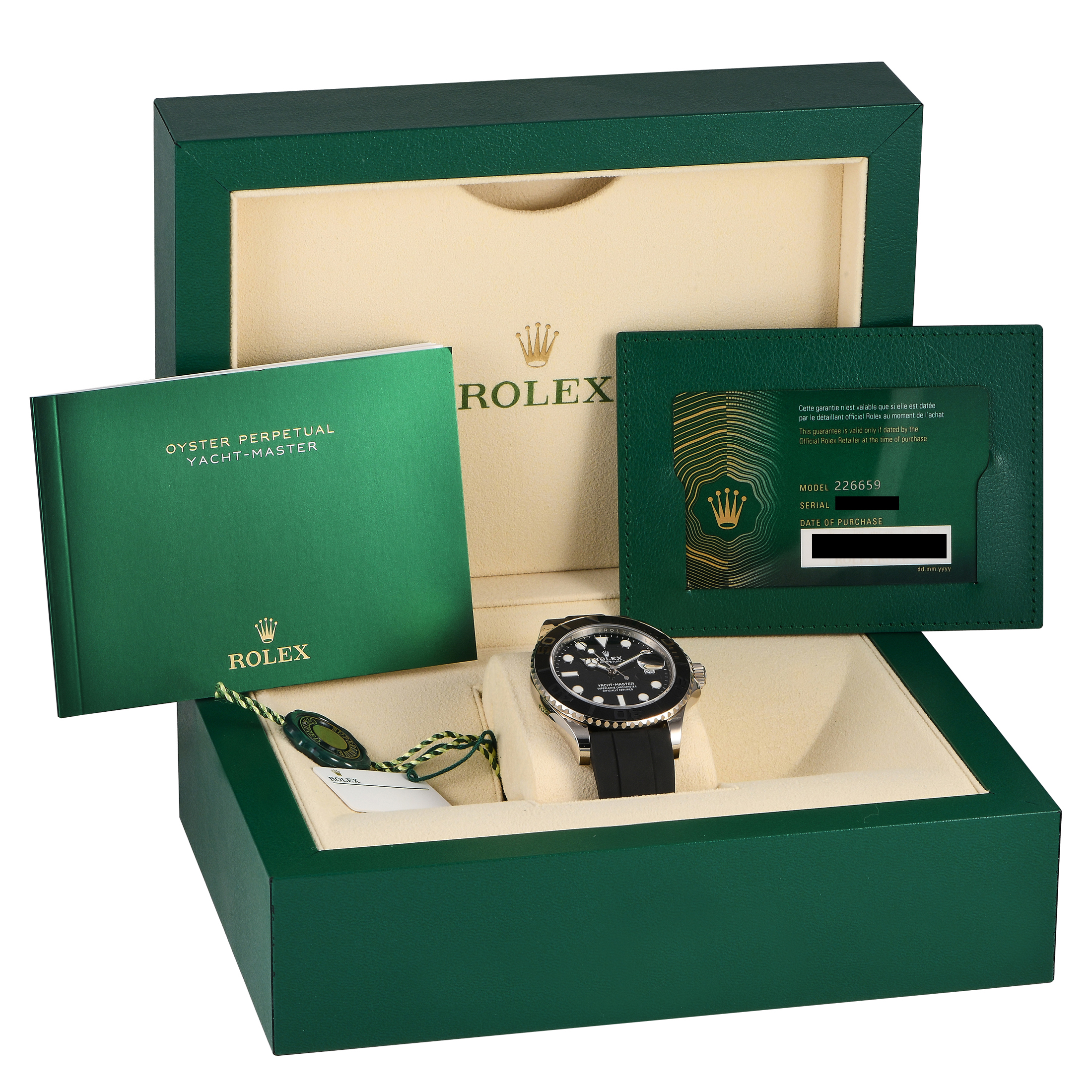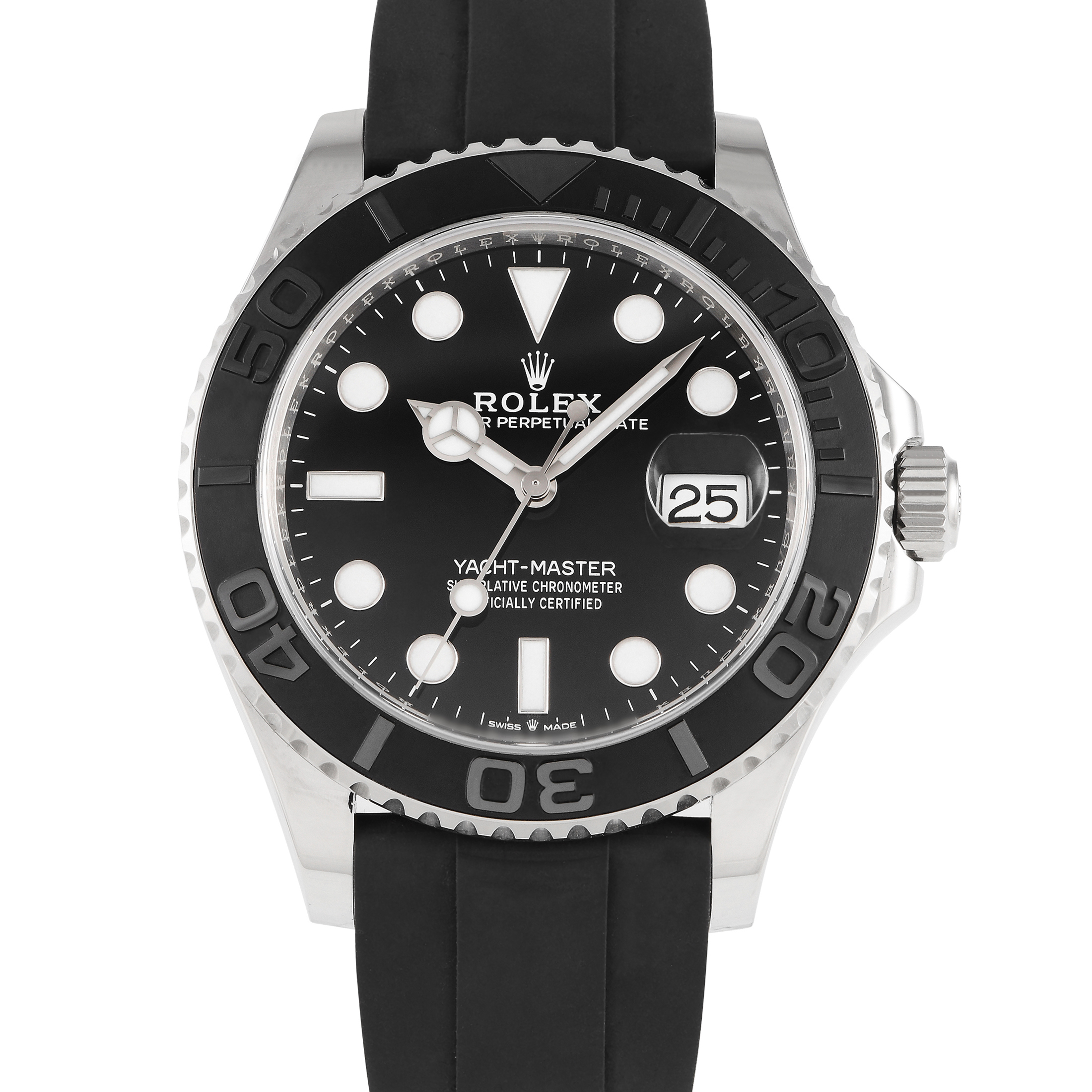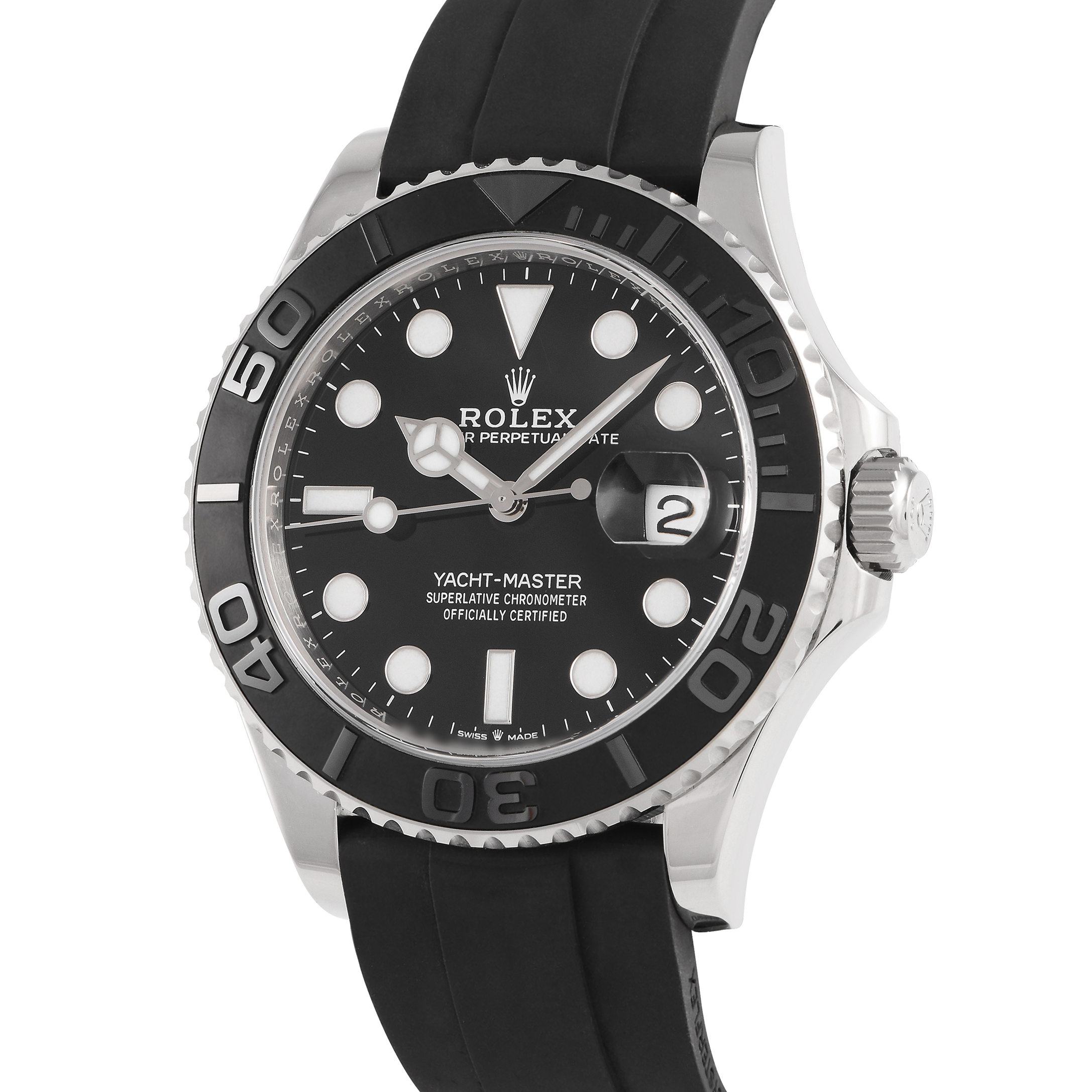 This pre-owned Rolex Yacht-Master 42 Black Dial 18K White Gold Watch 226659 comes with papers and the manufacturer’s box.