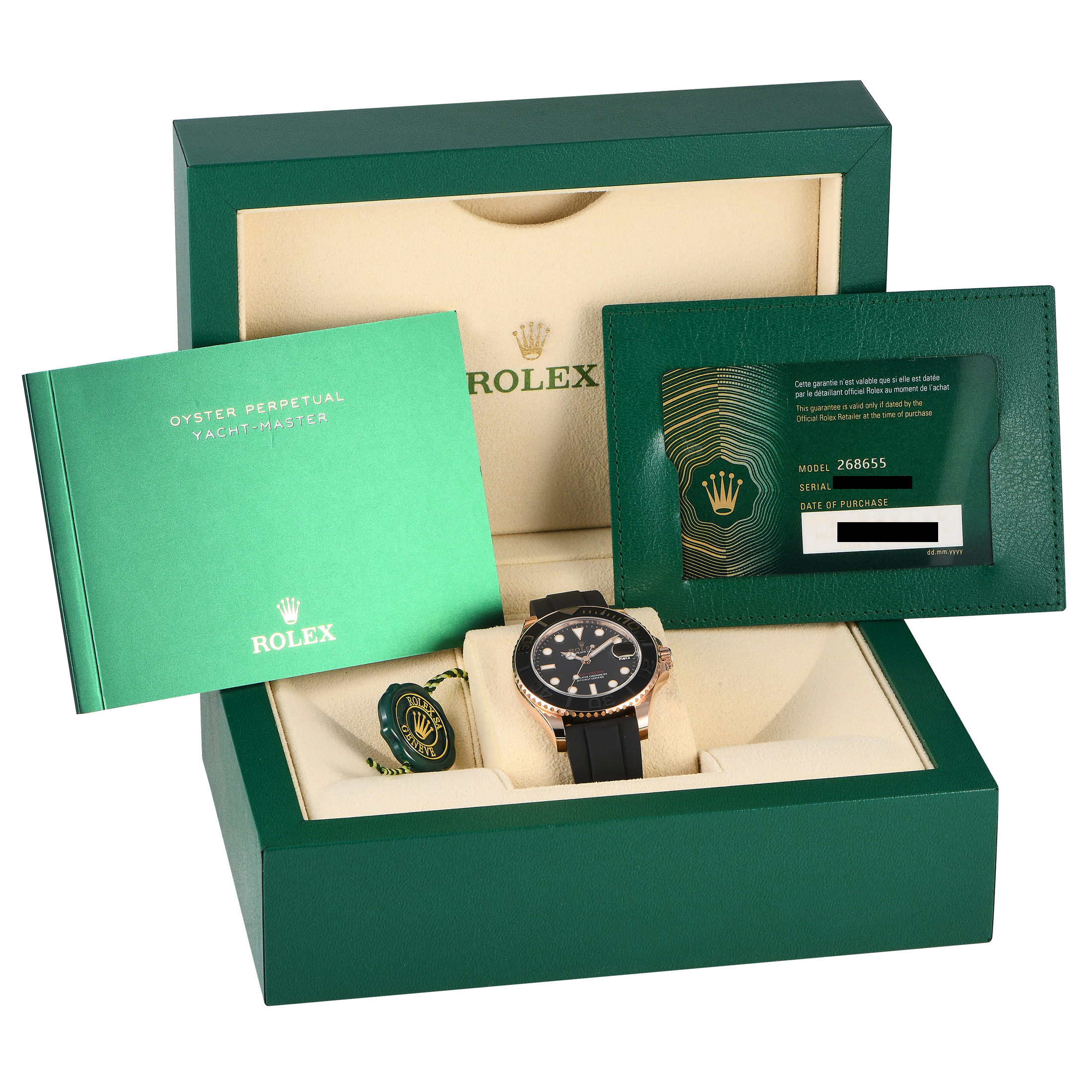 This pre-owned Rolex Yacht-Master 37 18K Everose Gold on Oysterflex Watch 268655 comes with papers and the manufacturer’s box.