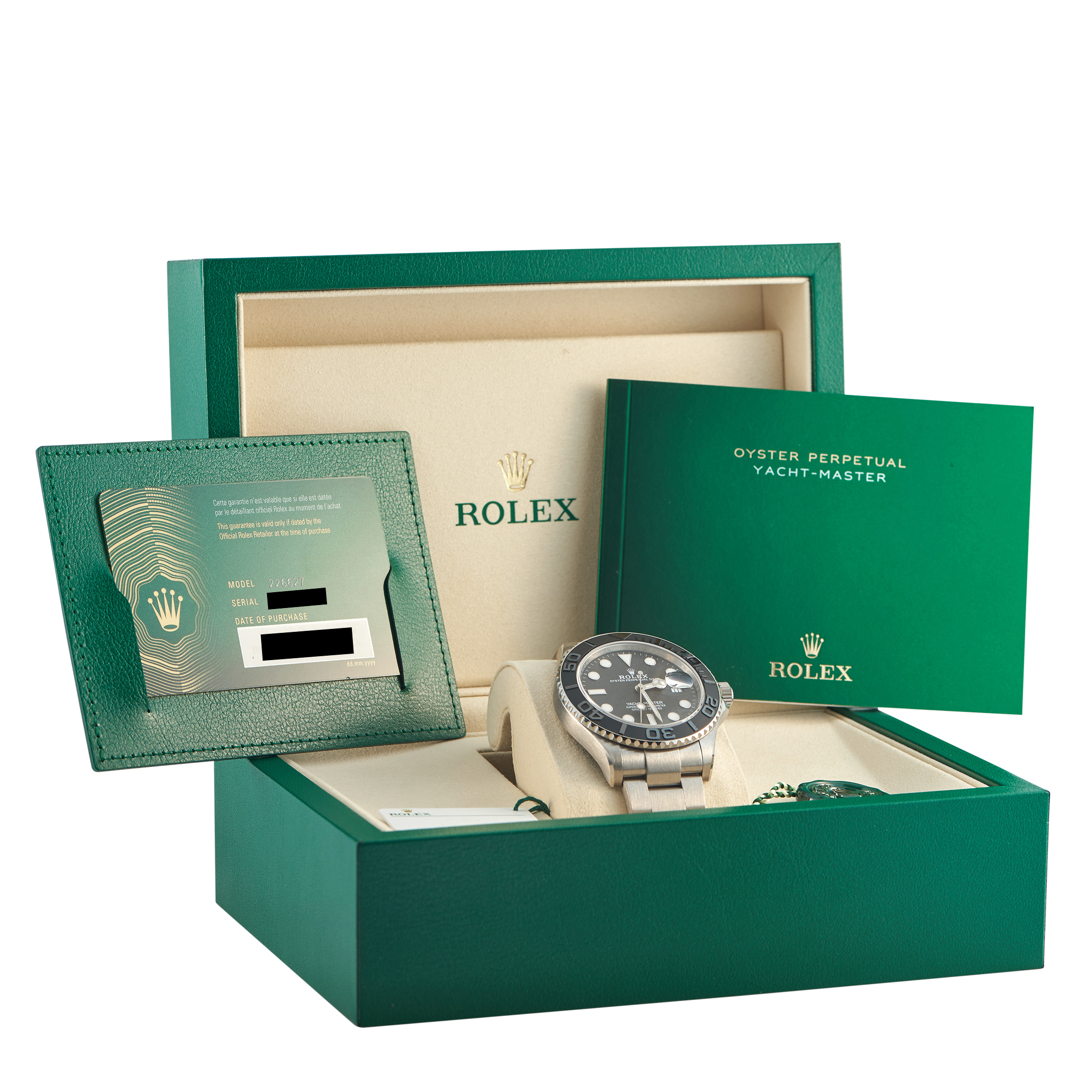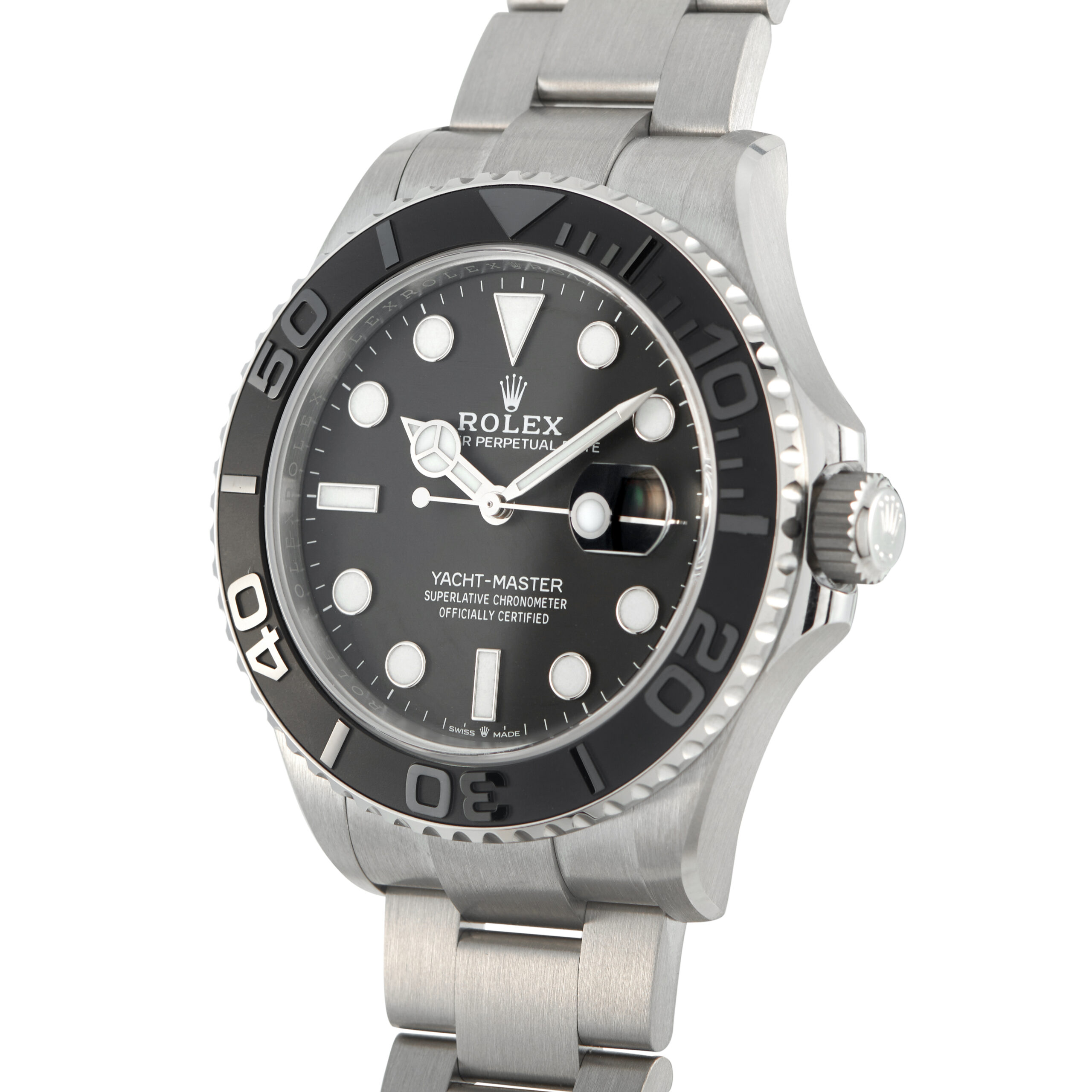 This is an unworn Rolex Yacht-Master 42 Titanium Watch 226627, offered as a complete set, with the manufacturer’s box and papers.