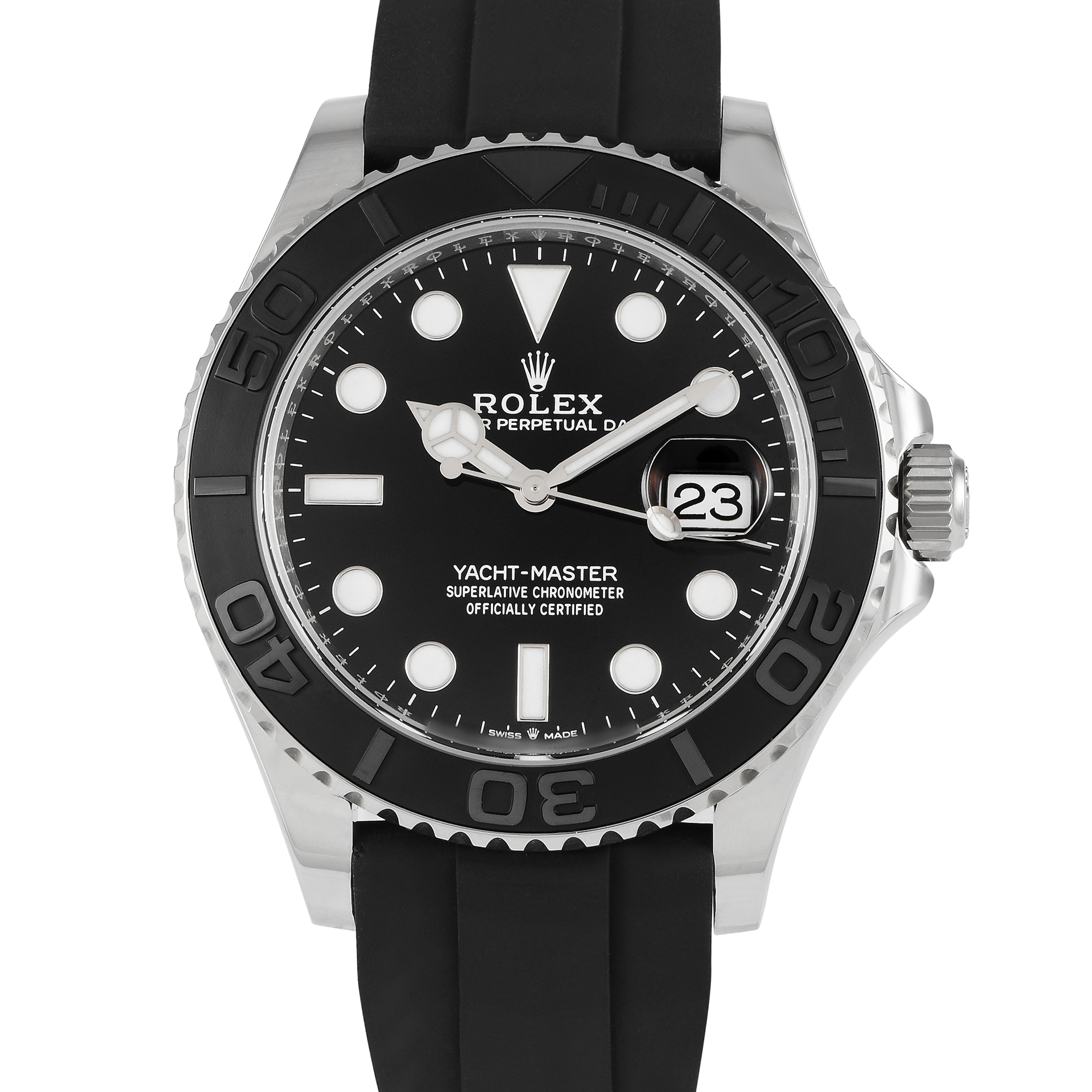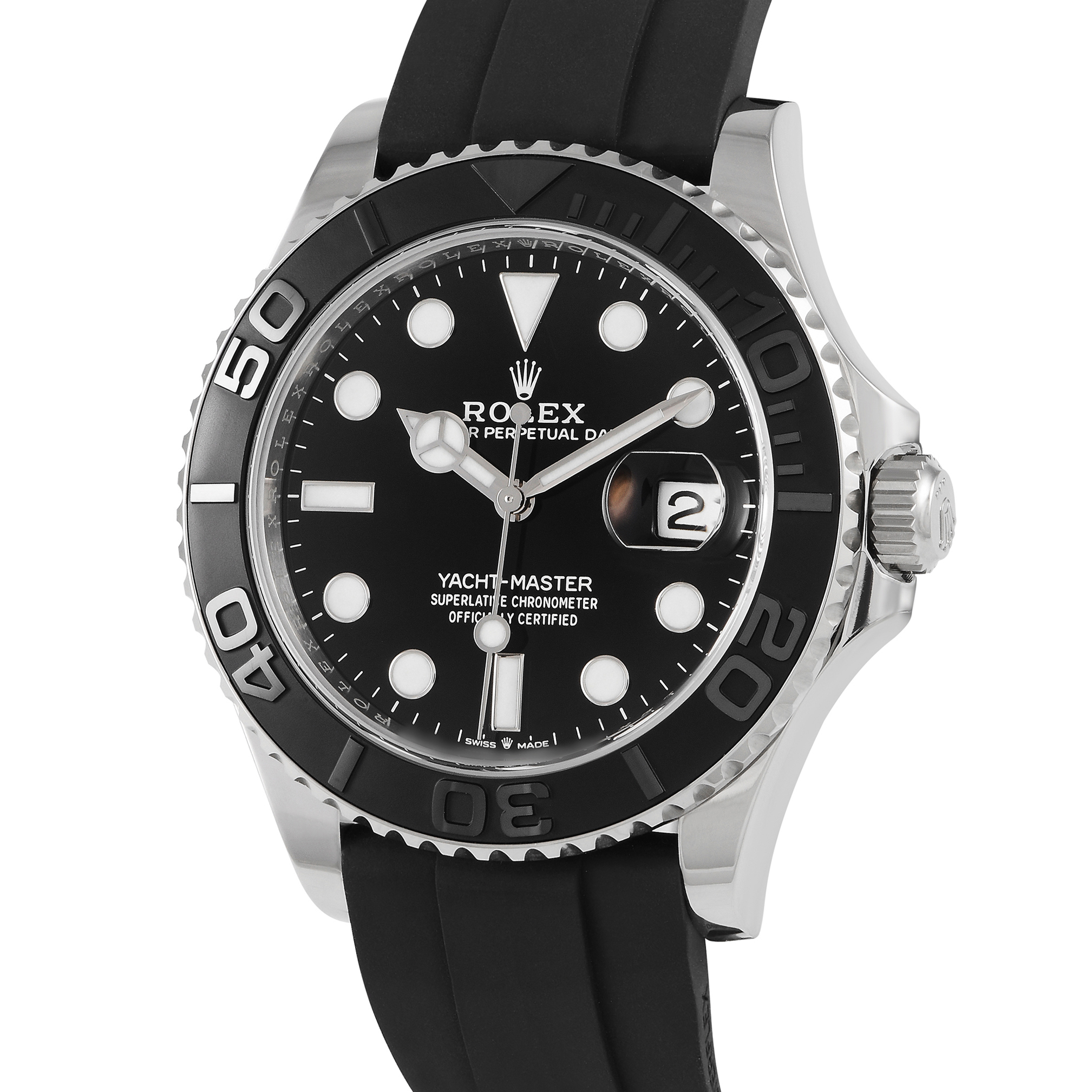 This unworn Rolex Yacht-Master 42 Black Dial 18K White Gold Watch 226659 comes with papers and the manufacturer’s box.