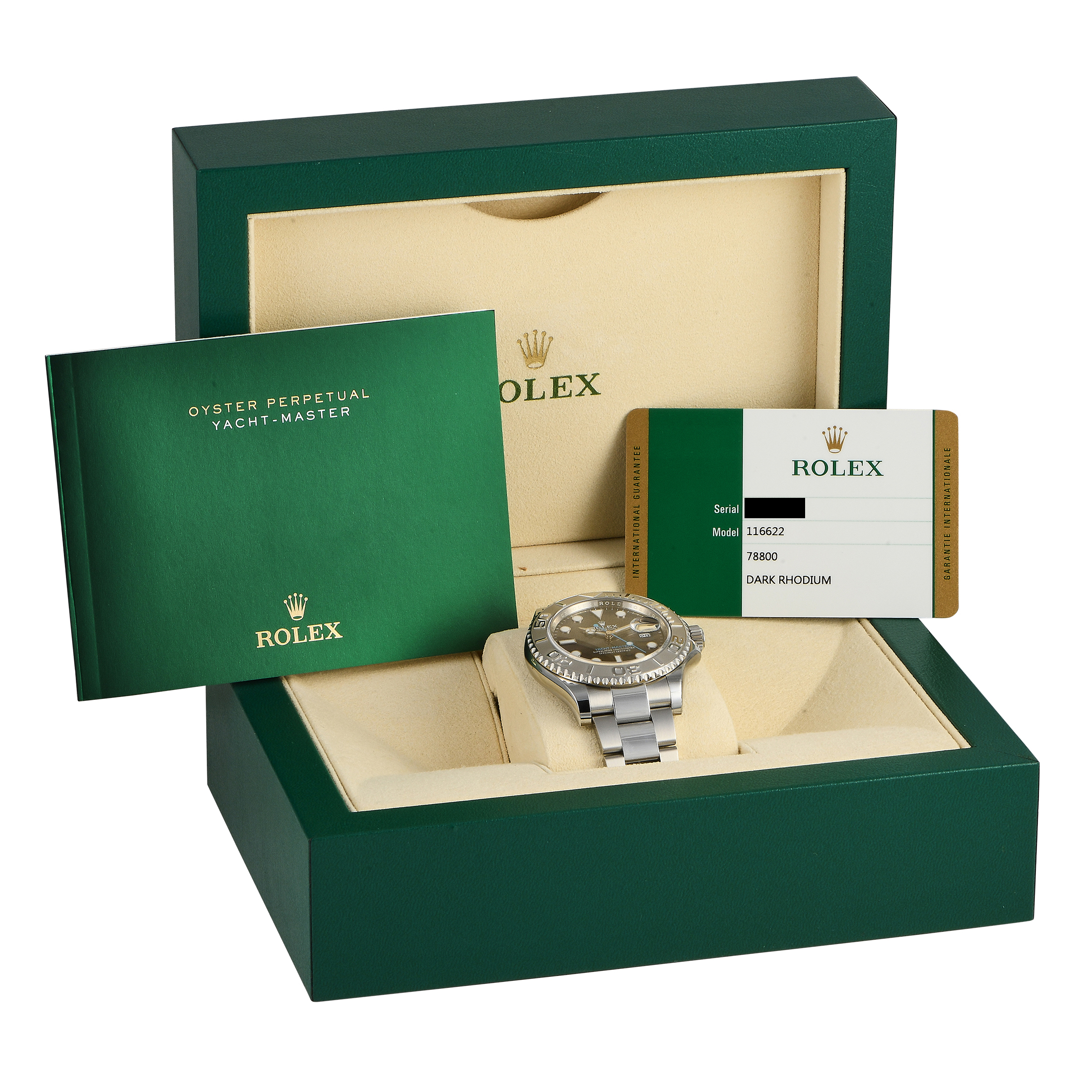 This pre-owned Rolex Yacht-Master Rhodium Dial Watch 116622 comes with papers and the manufacturer’s box.