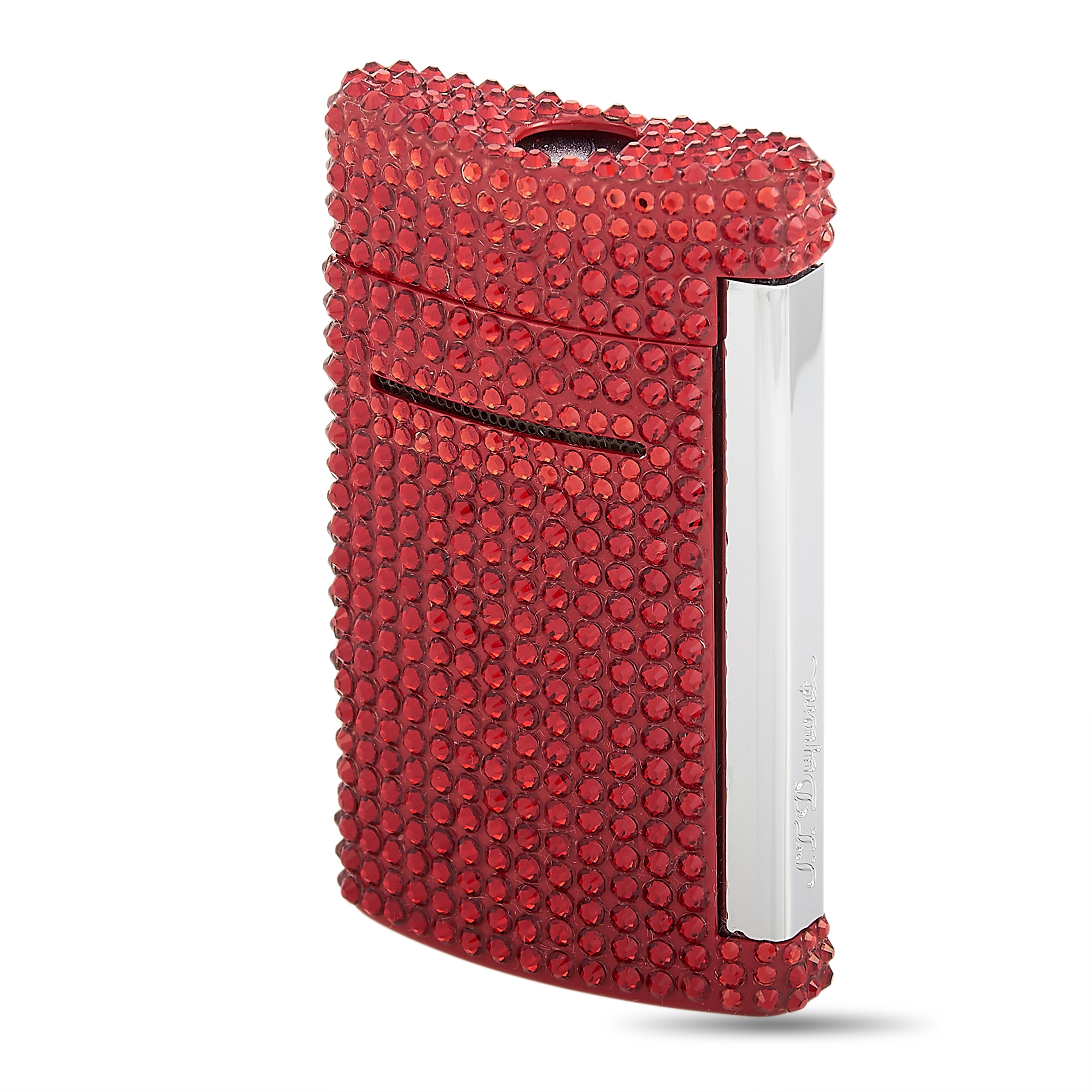The S.T. Dupont “Minijet” lighter is presented in attractive red with chrome finishing and fully paved with red Swarovski crystals.
