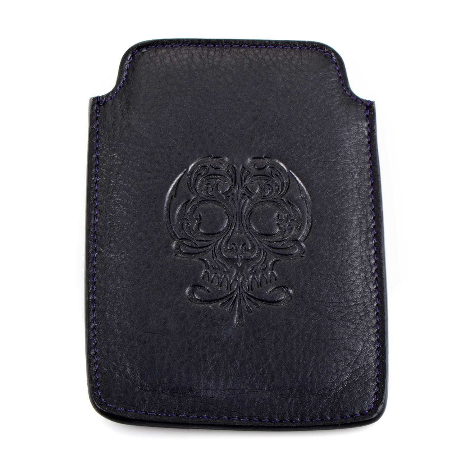 With stitching in royal violet nuance and marvelous imprint on the back adding a subtle aesthetic touch to the black leather, this exceptional iPhone case from Stephen Webster is a tasteful and reliable item.