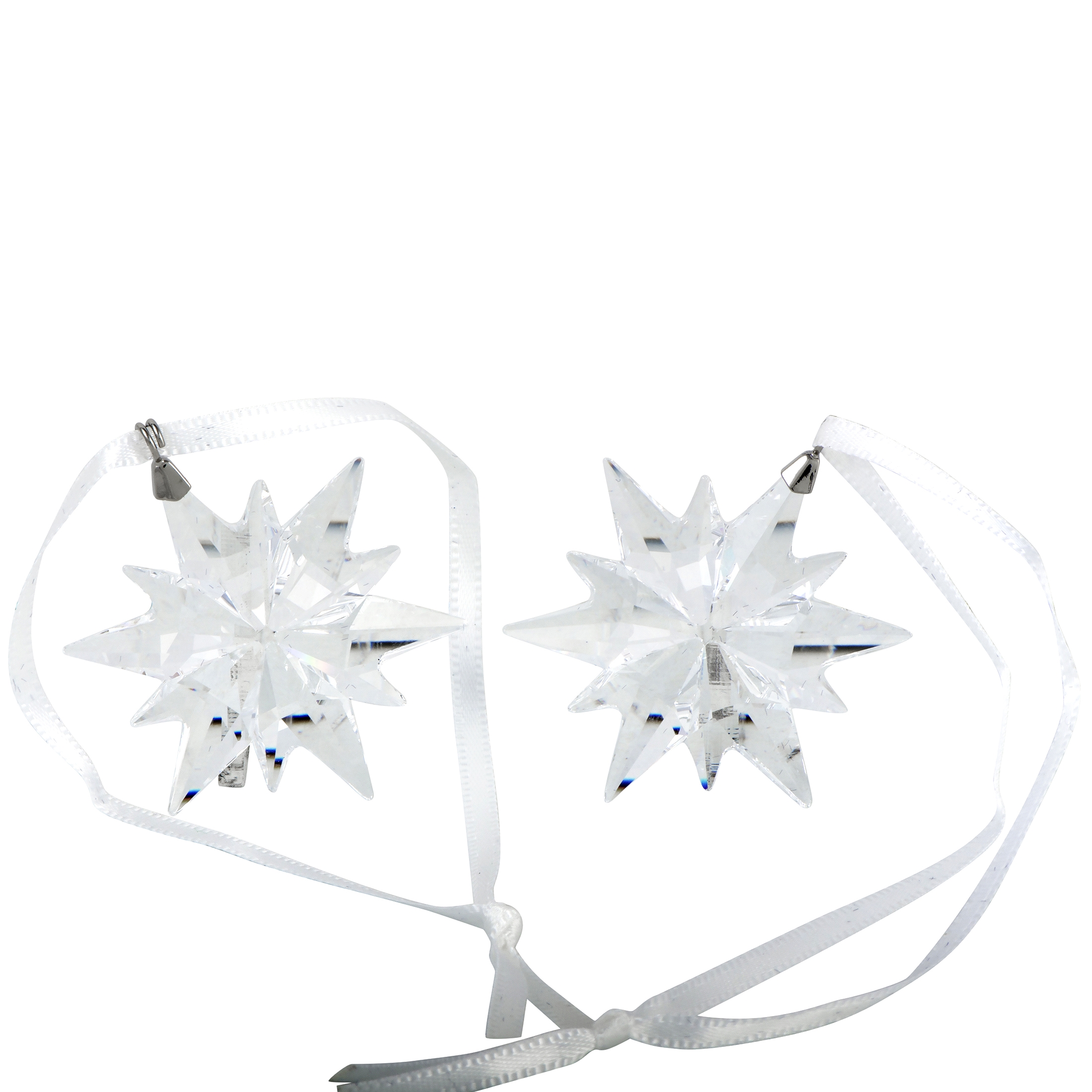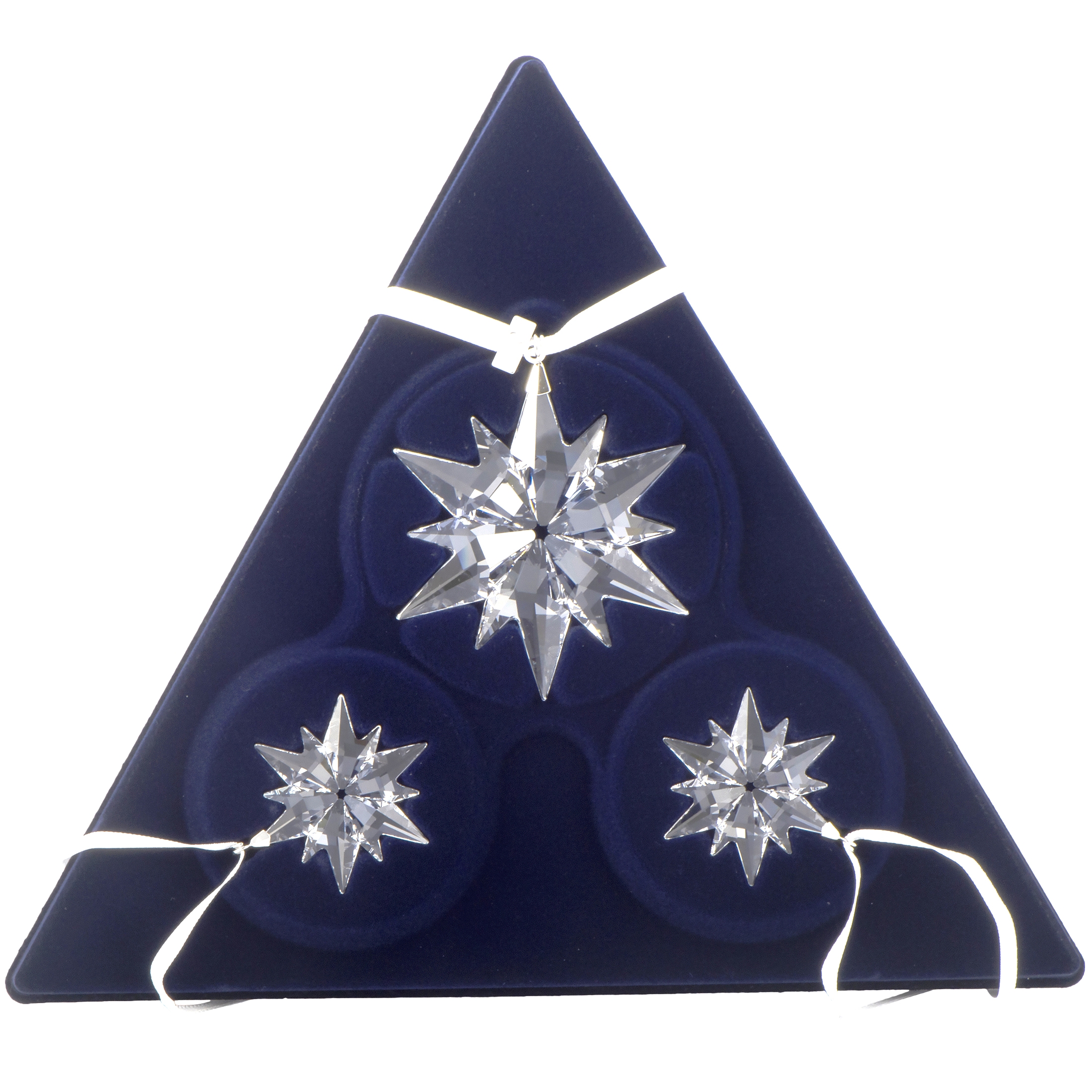 This Swarovski Christmas set includes three snowflake ornaments that are crafted in clear Swarovski crystal and presented on white ribbons.