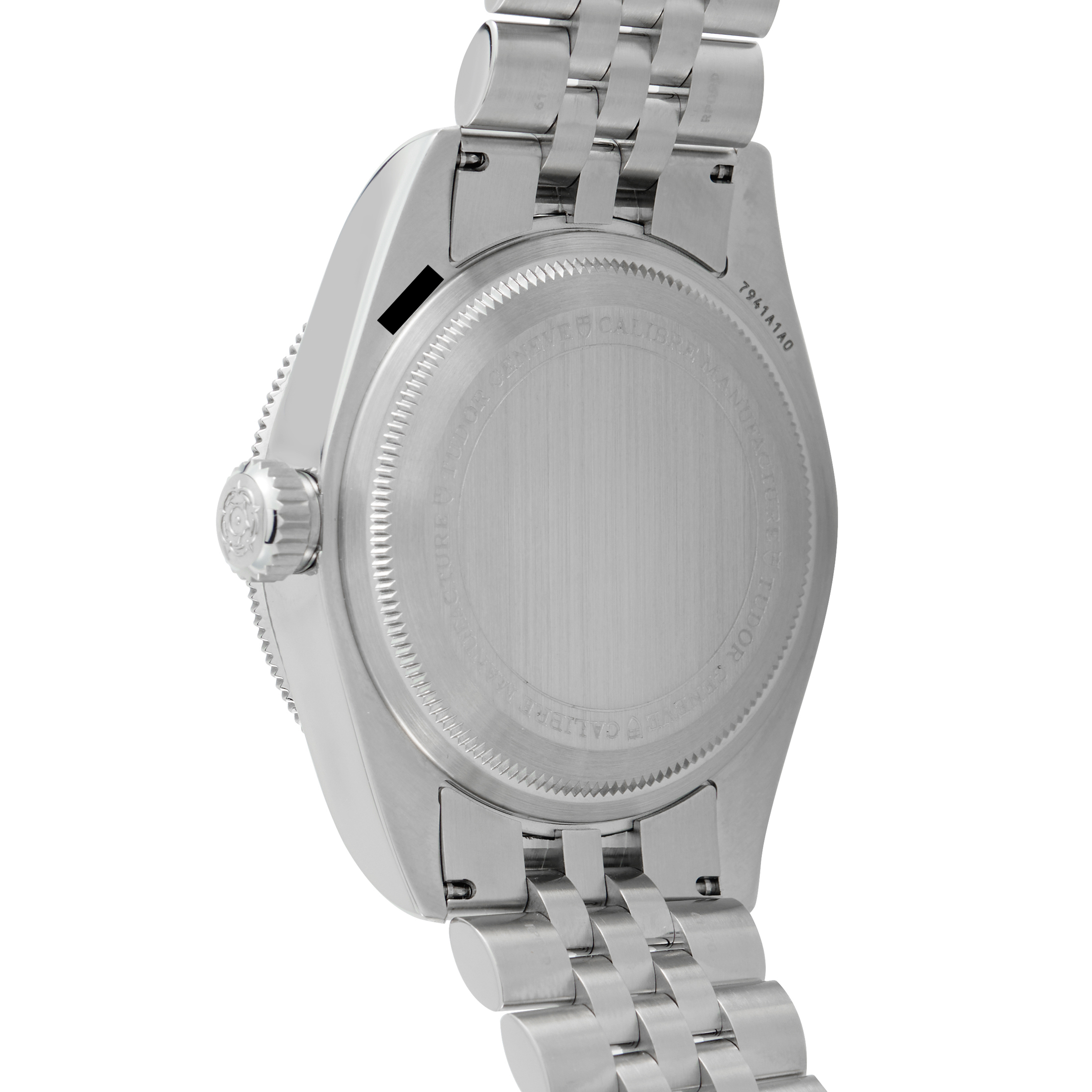 Monochrome and stripped back. The Tudor ref. 7941A1A0NU-0003 presents the Black Bay 41 in full steel with a black dial and matching black bezel. The case measures 41mm, worn on a five-link steel bracelet with T-fit clasp adjustment. Solid construction throughout, with a legible dial. Applied hour markers are rhodium-plated, filled with white Super-LumiNova for clear low-light visibility. Snowflake hands remain the central pillar of its identity.