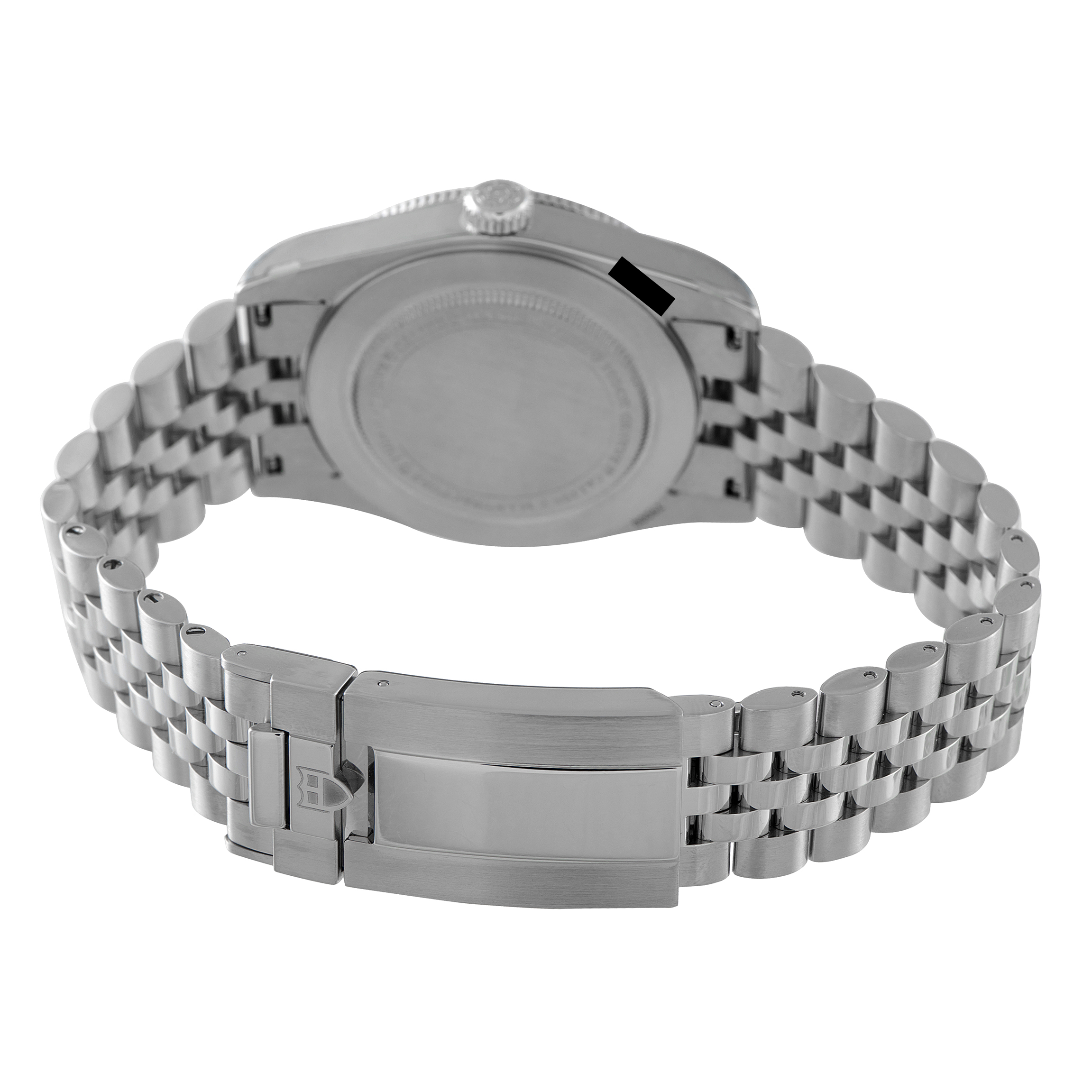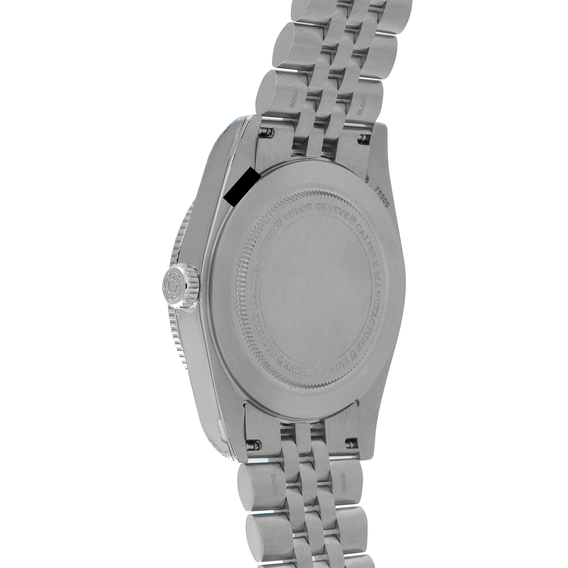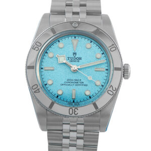 Launched in 2024 with a 37mm stainless steel case, the Tudor Black Bay 54 “Blue Lagoon” ref. 79000 offers a modern take on a vintage dive watch. Its bright, turquoise-leaning blue dial adds character without tipping into novelty. Legibility remains central, thanks to the applied markers and snowflake hands that stand out clearly against the sand-textured dial. With its in-house Caliber MT5400 automatic movement offering roughly three days of running time from a full wind, this version suits everyday casual wear, travel, and summer settings.