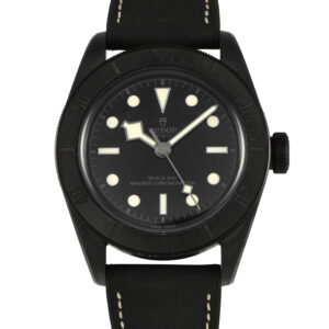 Designed with precision in mind, this timepiece features a 41mm ceramic case and a uni-directional rotating bezel. A black hybrid leather and rubber strap further enhances the monochromatic design. On the black dial, you’ll find luminous black hands and luminous index markers. It’s powered by a Tudor calibre MT5602-1U automatic movement with a 70-hour power reserve and is water resistant up to 200 meters.