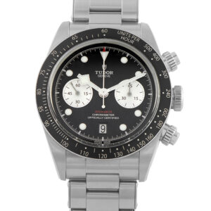 The Tudor Black Bay Chrono ref. 79360N links motorsport timing with the toughness of a true dive watch. Encased in its 41mm steel case is the COSC-certified Manufacture Calibre MT5813, an integrated chronograph movement with vertical clutch, column wheel, and a 70-hour power reserve. The heritage-inspired case lines and prominent aluminum tachymeter bezel nod to its vintage roots, while the striking “reverse panda” dial (with black main dial and white sub-dials) delivers sharp, immediate legibility.