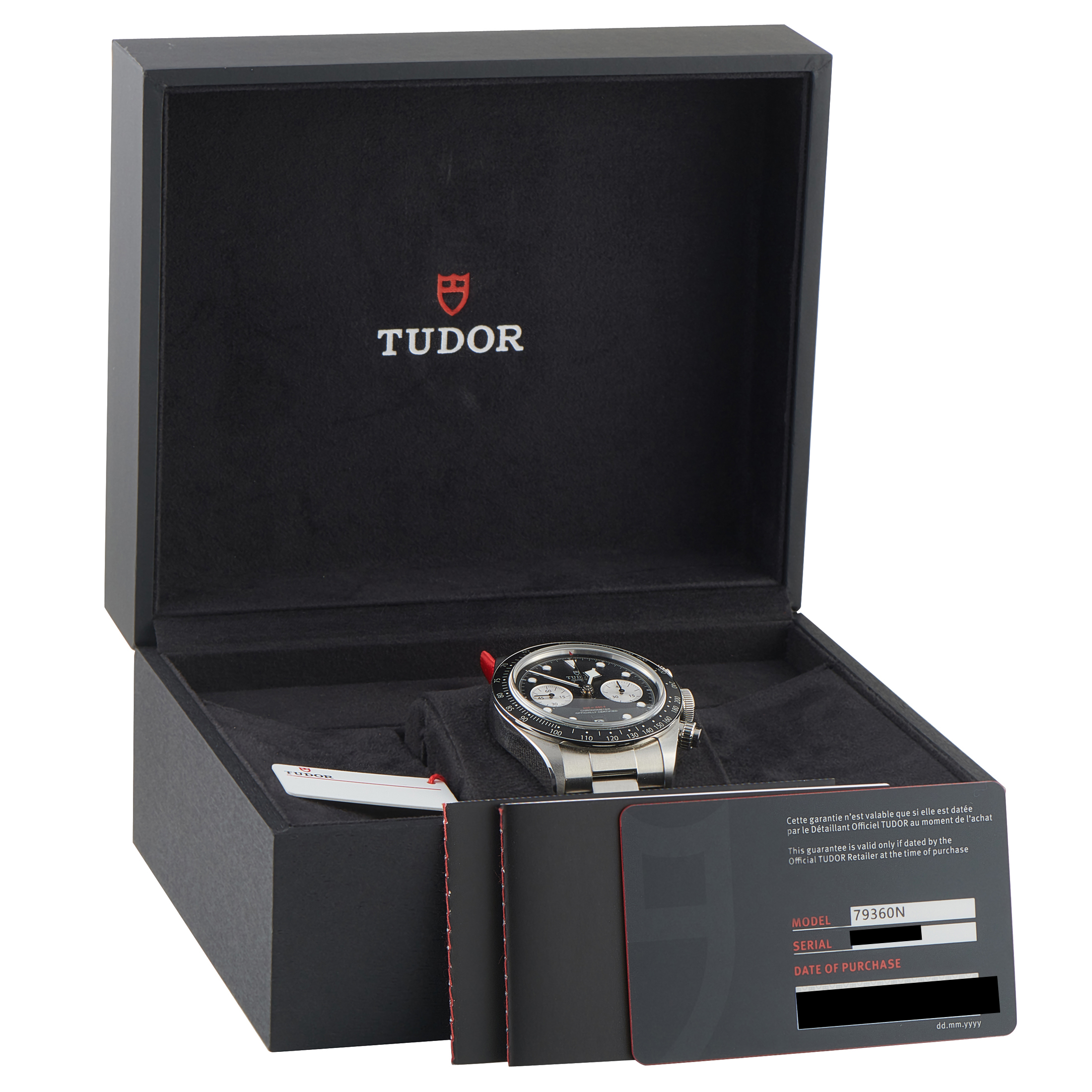 Offered pre-owned, this Tudor Black Bay “Reverse Panda” Chronograph Steel Watch 79360N comes complete with papers and the manufacturer’s box.