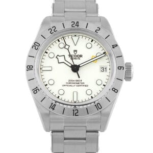 Offered pre-owned, this Tudor Black Bay Pro Steel Watch 79470 comes with papers and the manufacturer’s box.
