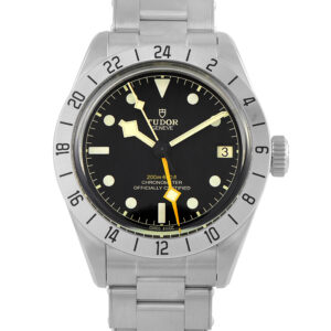 The Black Bay Pro combines vintage charm with contemporary performance. This tool watch has a satin-finished steel case measuring 39mm, paired with a 24-hour bezel that allows you to track a second time zone instantly. The yellow GMT hand, along with the hour and minute hands, slide through a black dial, ensuring legibility even under low light conditions. The watch is powered by the in-house Caliber MT5652, a COSC-certified chronometer movement, and is waterproof to 200 meters.