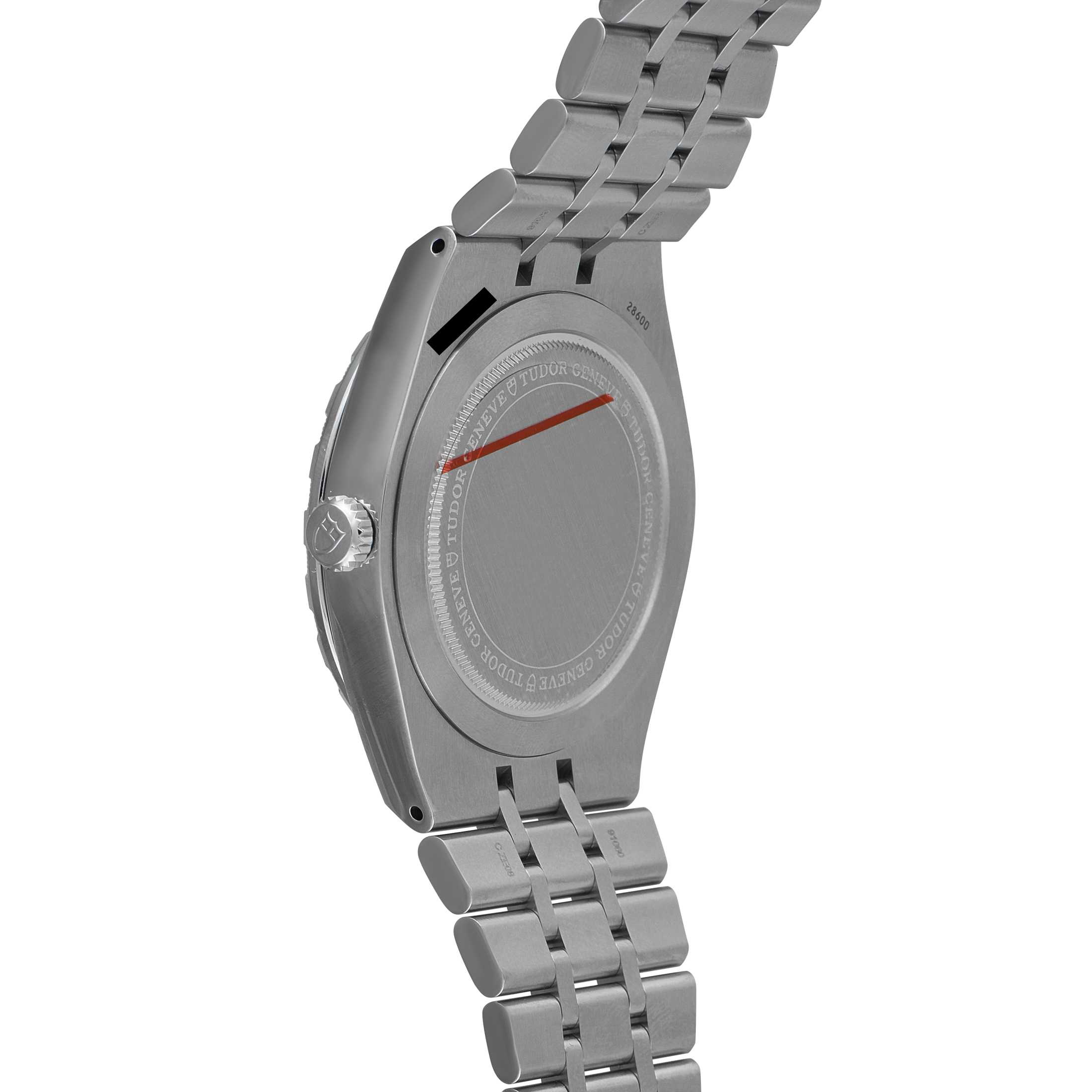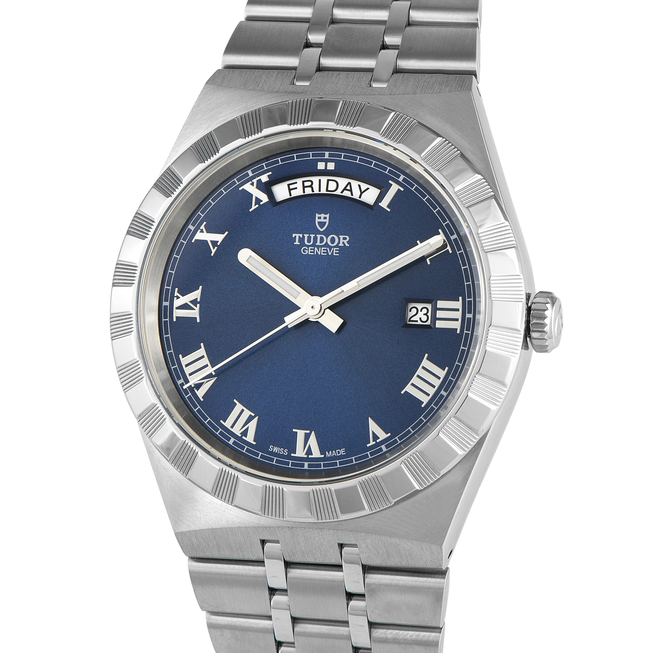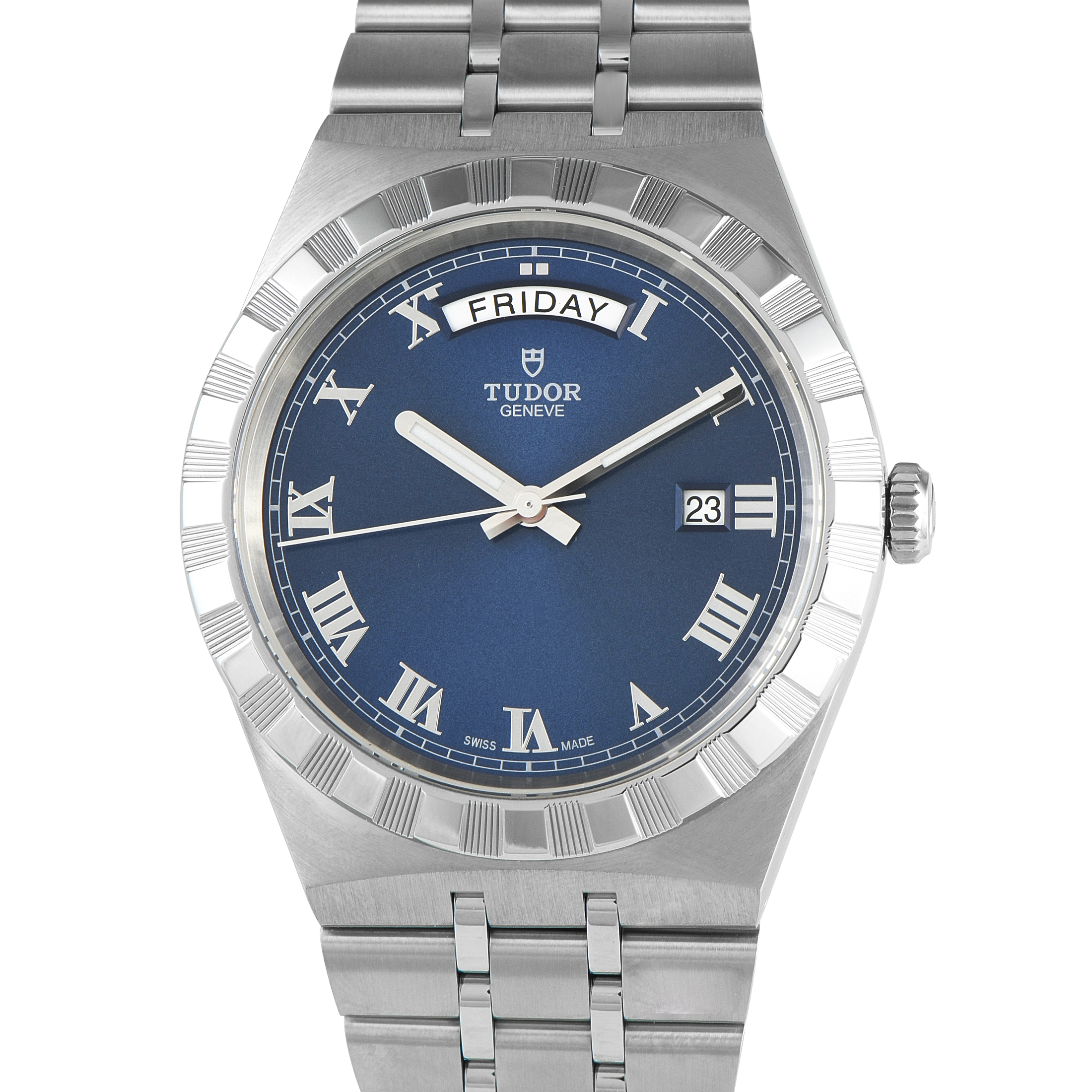 Tudor Royal is for those who demand both sophistication and authority. The watch features a sleek case paired with a notched and grooved bezel, and an integrated five-link bracelet. Its legible dial presents a blue sunray finish, detailed with applied Roman numerals, luminous hands, the date window at 3 o’clock, and the day aperture at 12 o’clock. A sapphire crystal protects the watch’s face. Inside this refined timepiece is the self-winding caliber T603 with approximately 38 hours of power reserve.