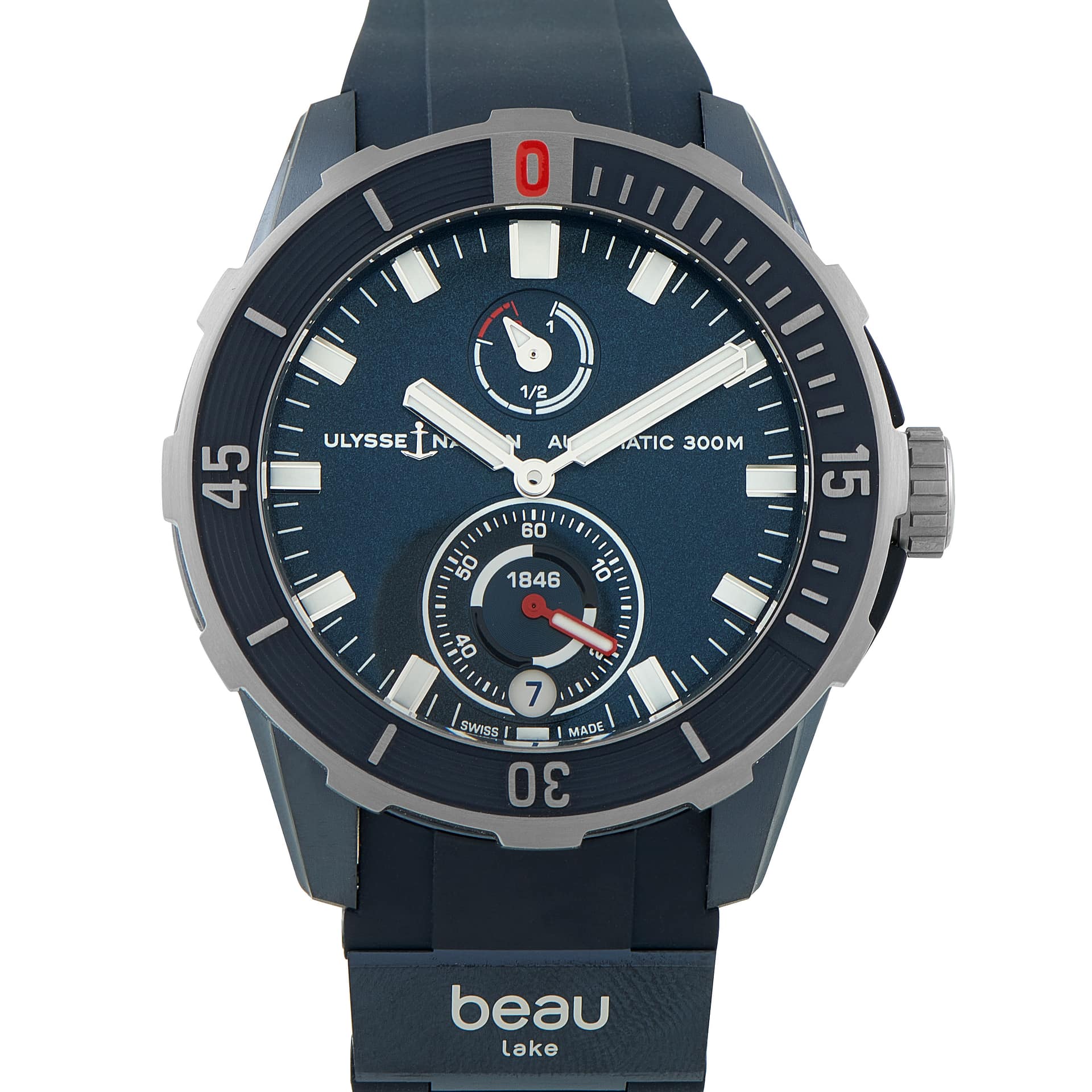 This is an unworn Ulysse Nardin Diver X Beau Lake Limited Edition Watch 1183-170LE-3A-BEAU. It comes with papers and the manufacturer’s box.