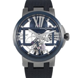 The Ulysse Nardin Executive Skeleton Tourbillon Watch, reference number 1713-139/43, is a lightweight timepiece with an instantly recognizable aesthetic.