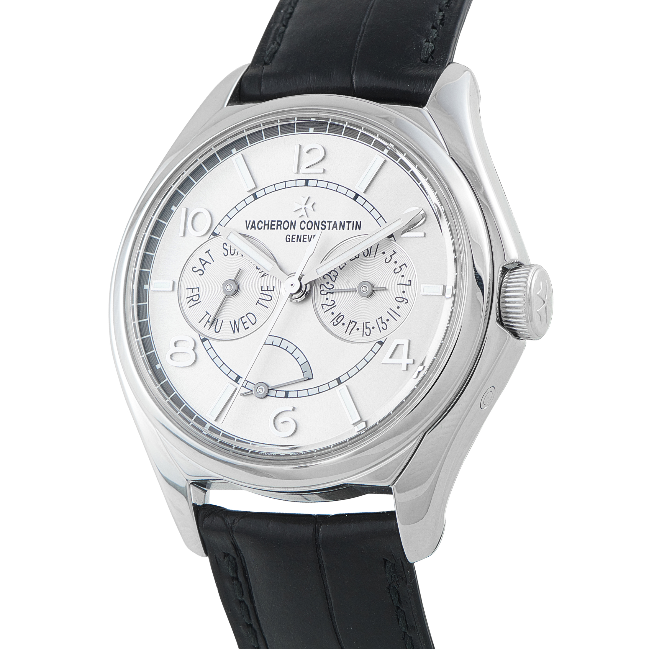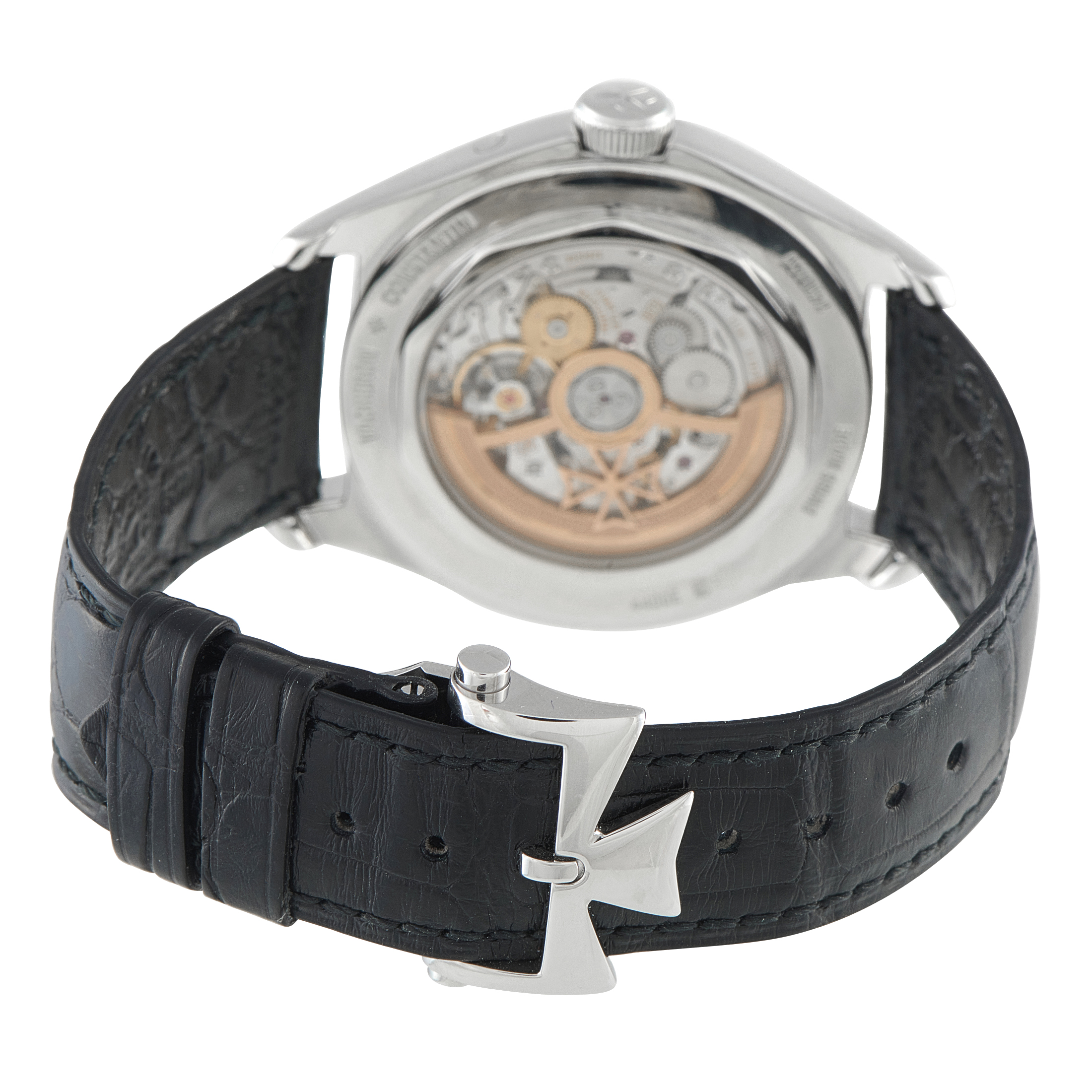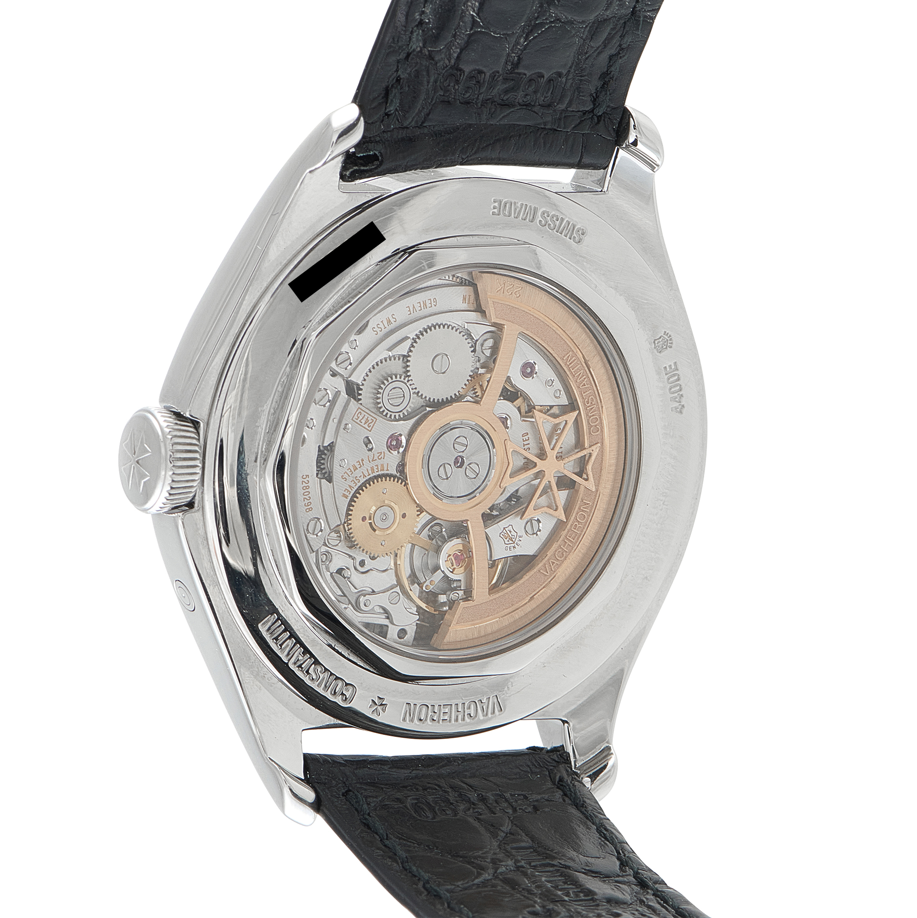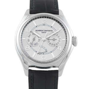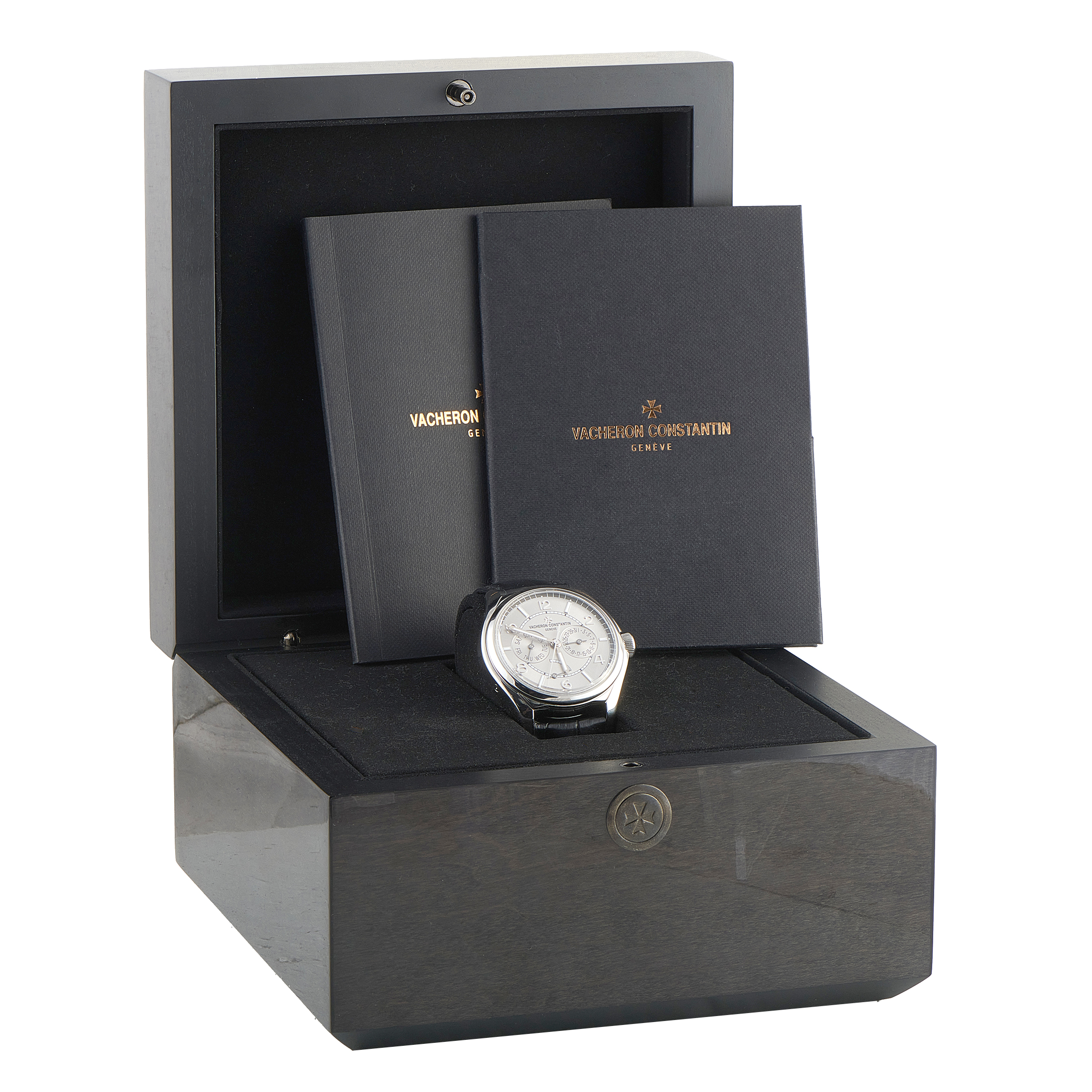 Papers and the manufacturer’s box accompany this pre-owned Vacheron Constantin Fiftysix Day-Date Steel Watch 4400E/000A-B437.