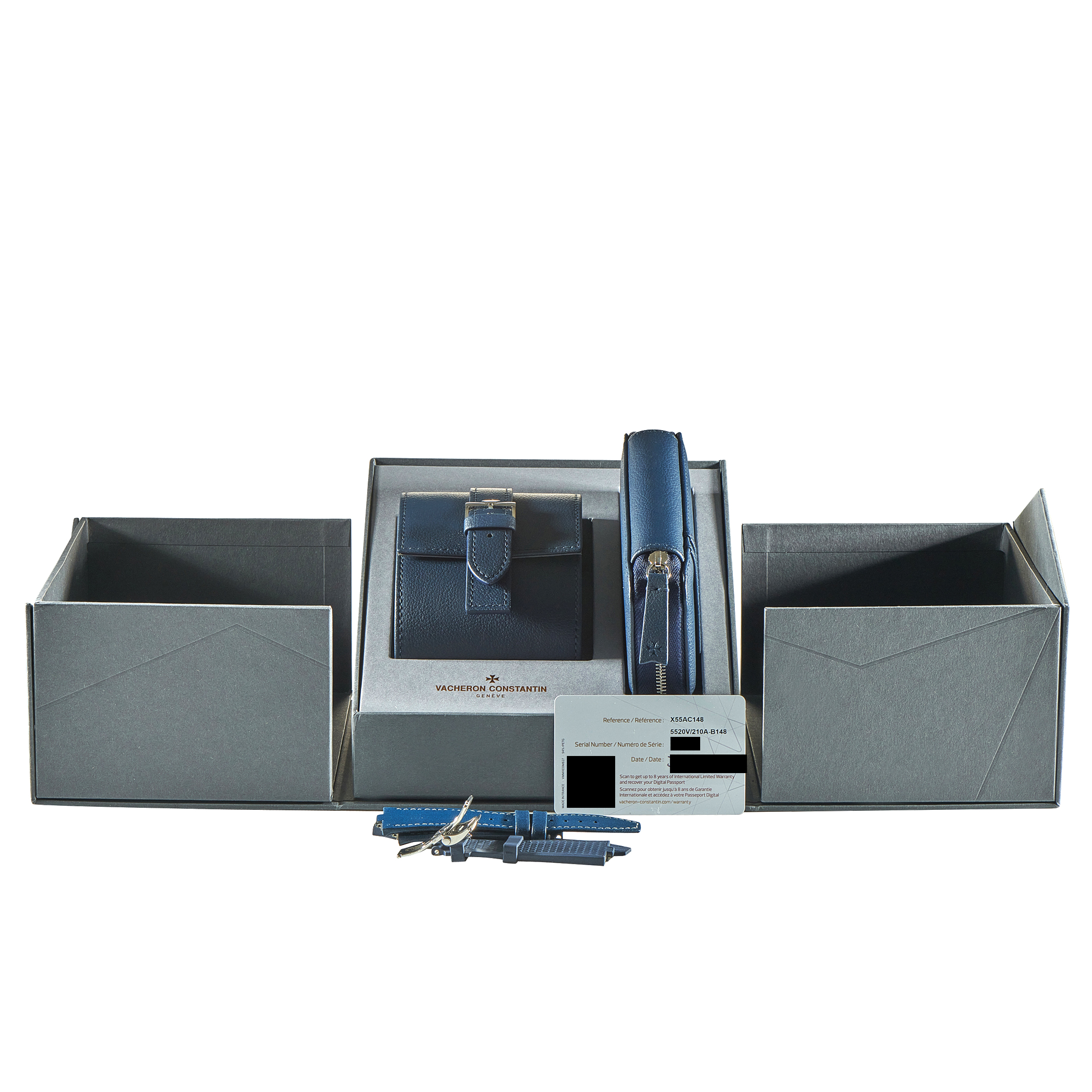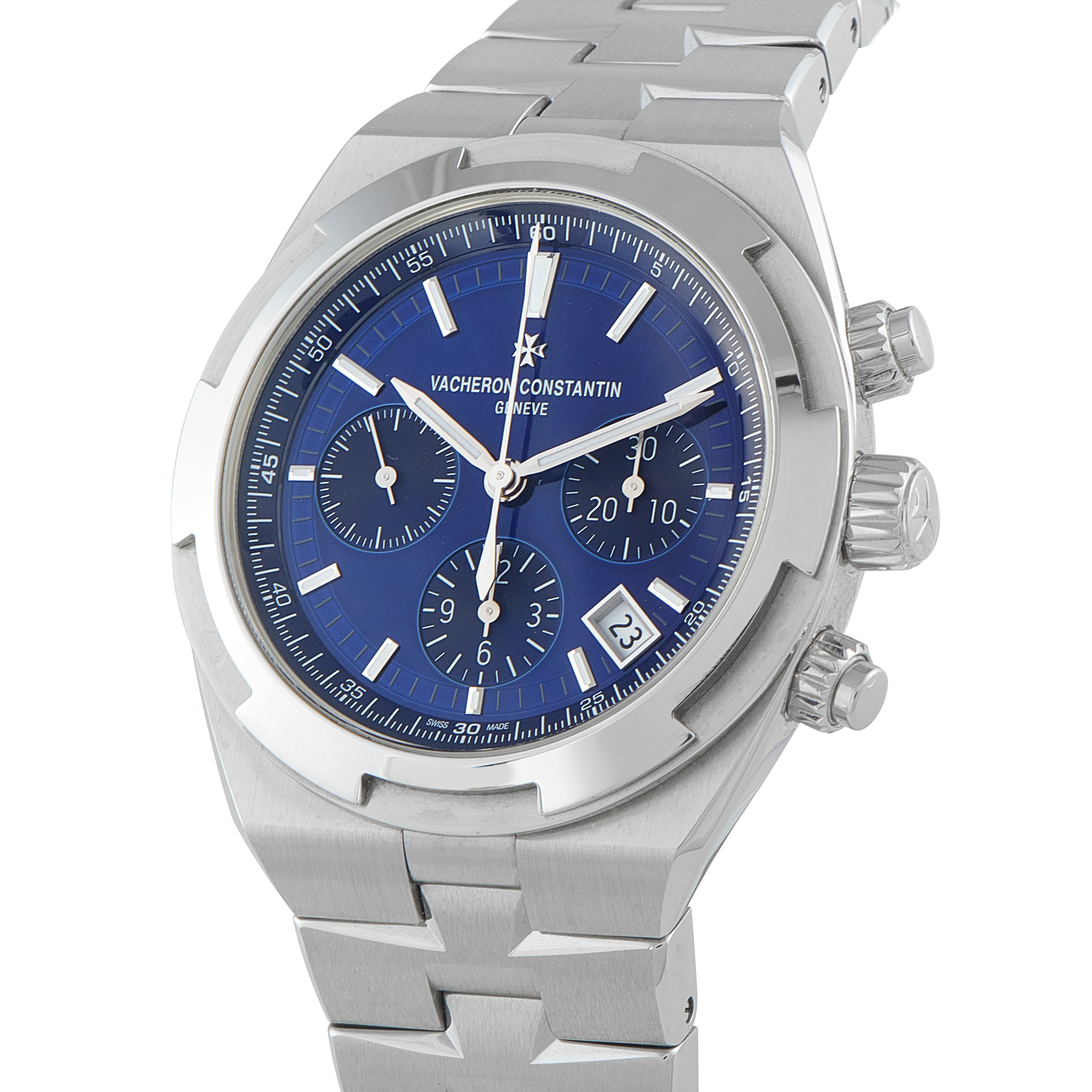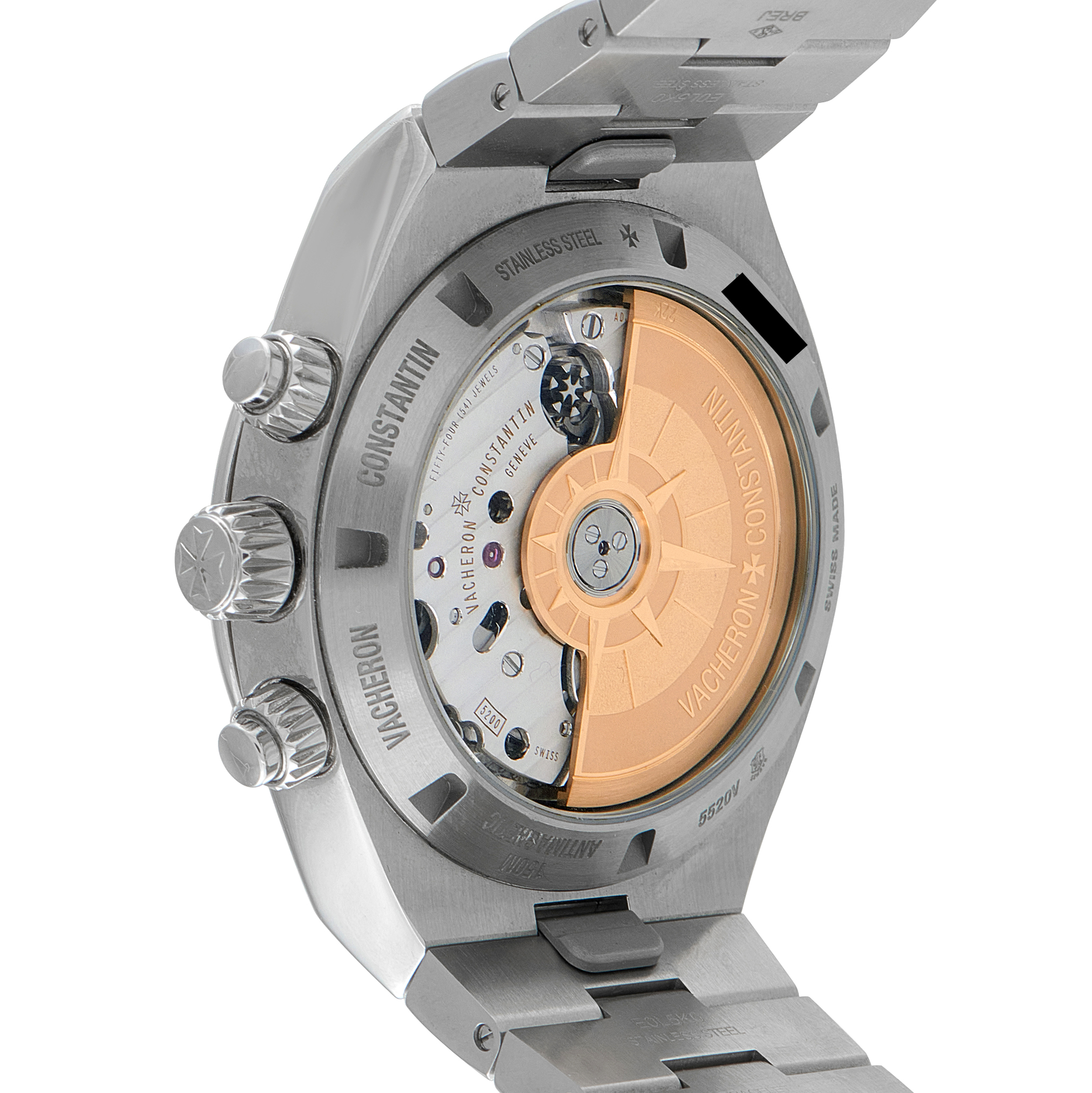 This is a pre-owned Vacheron Constantin Overseas Chronograph Steel Watch 5520V/210A-B148. It comes complete with papers, a leather wallet, extra straps, and the manufacturer’s box.