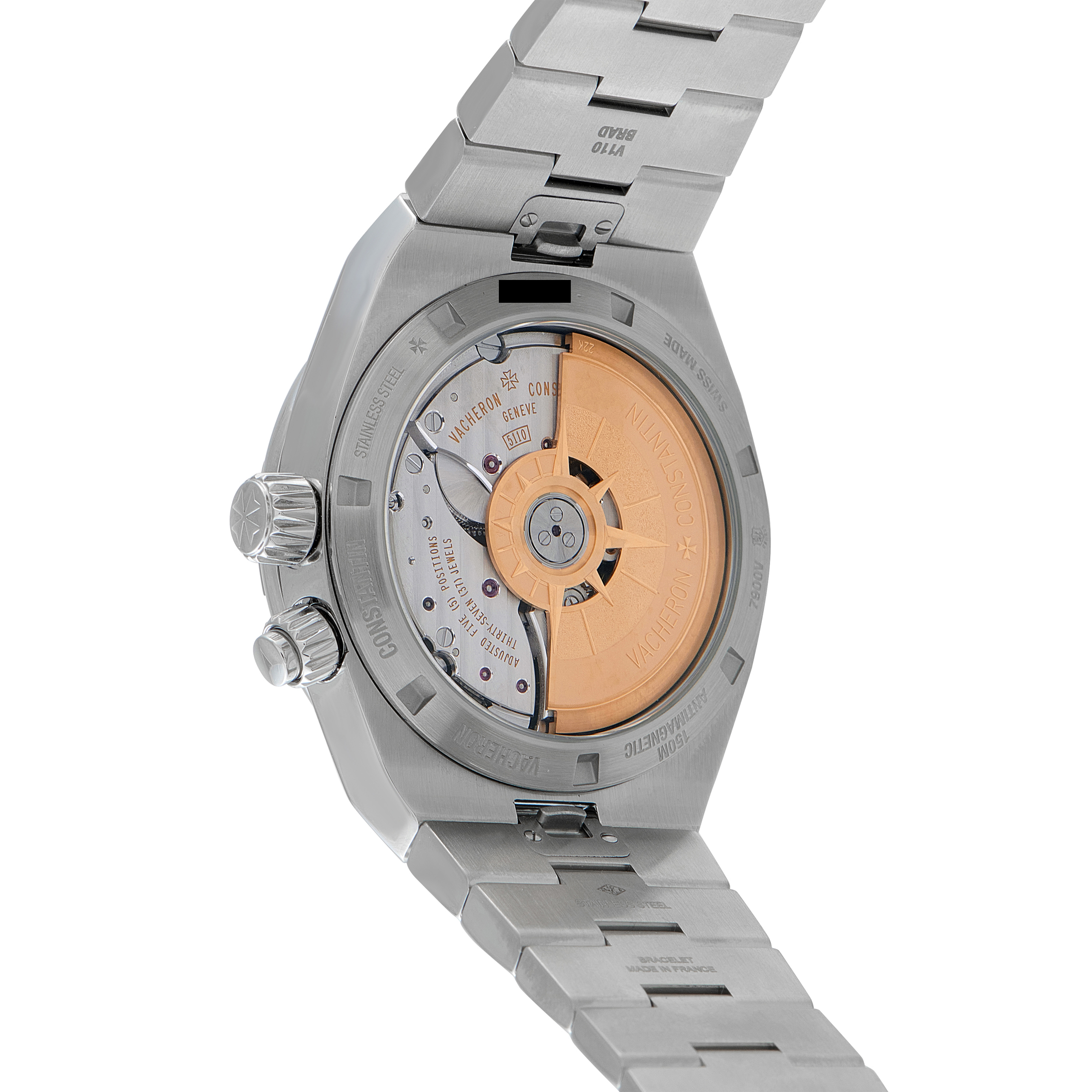 Reference 7900V offers a modern solution for the global traveler, grounded in the traditions of the Holy Trinity. Its blue dial features a lacquered finish as an elegant backdrop for the second time zone, AM/PM aperture, and pointer date. Each marker is filled with luminous material to aid visibility in low light. Powering the display is the automatic caliber 5110 DT, featuring a 60-hour power reserve and an engraved 22k gold rotor showcased through the sapphire crystal back. Supplied with an interchangeable bracelet and straps, the 7900V adapts easily from business attire to off-duty wear.