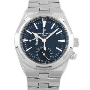 This pre-owned Vacheron Constantin Overseas Dual Time Blue Dial Steel Men’s Watch 7900V/110A-B334 comes with a gift box and rubber straps.