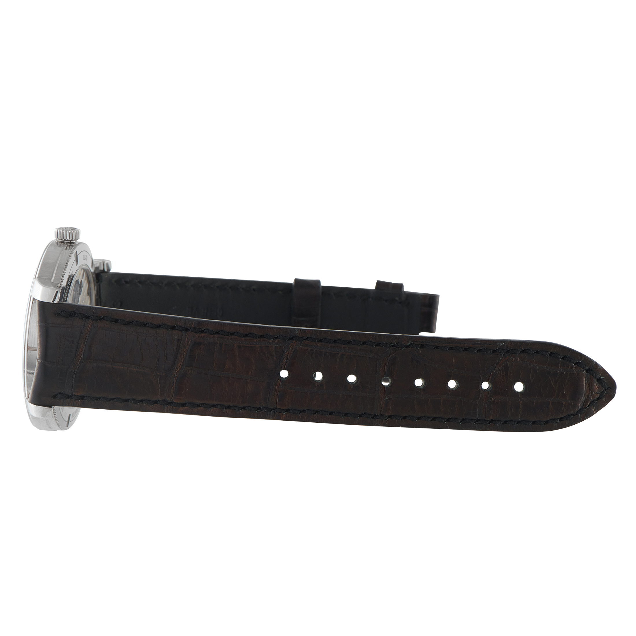 Clear in purpose, the Traditionelle ref. 82172/000g-9605 highlights Vacheron Constantin’s focus on heritage. An 18k white gold case houses a silver-toned dial where sharp dauphine hands move across diamond hour markers. The recessed small seconds register at six breaks the flat surface, creating a focal point without disrupting the balanced face. Visible through the sapphire caseback is the manual-winding Calibre 4400 AS, with its broad bridges with Geneva stripes and hand-polished edges. Power reserve is approximately 65 hours.