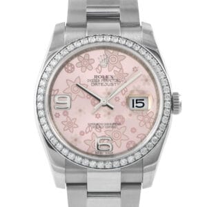 • Rolex Datejust 36 Pink Floral Dial Diamond Bezel Watch 116244