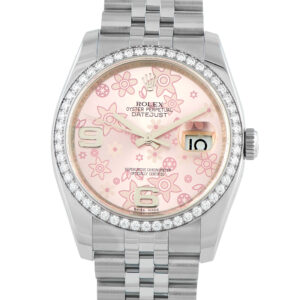 Rolex Datejust 36 Floral Pink Dial Diamond Bezel Steel Jubilee Watch 116244
