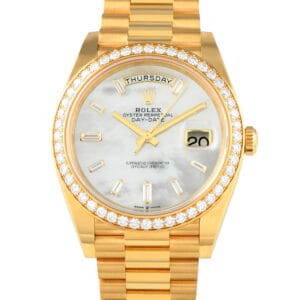 Rolex Day-Date 40 White Mother-of-Pearl Diamond Dial Yellow Gold President Watch 228348RBR