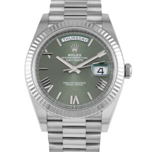 Rolex Day-Date 40 Olive Green Dial White Gold President Watch 228239