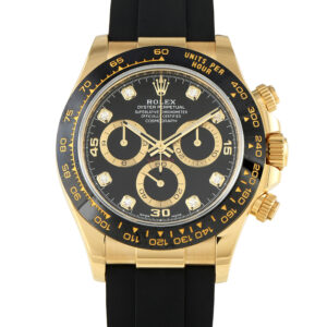 Rolex Daytona Black Diamond Dial Yellow Gold Oysterflex Watch 116518LN