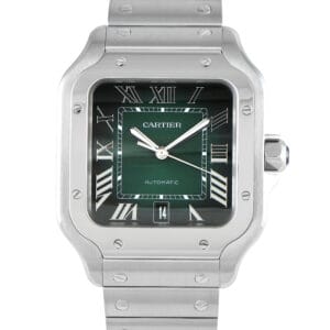 • Cartier Santos Green Dial Medium Model Steel Watch WSSA0061